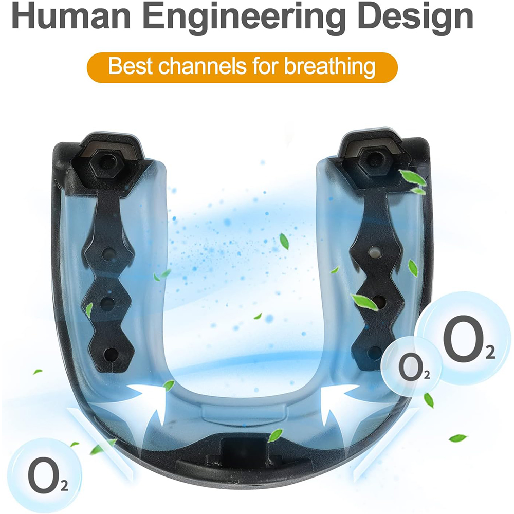 The heavy-duty exoskeleton shockproof frame combines three strategic ventilation holes design, which will allow the air to escape more freely to provide an easier breathing experience and optimal comfort. Besides, each mouthguard comes with a convertible tether.