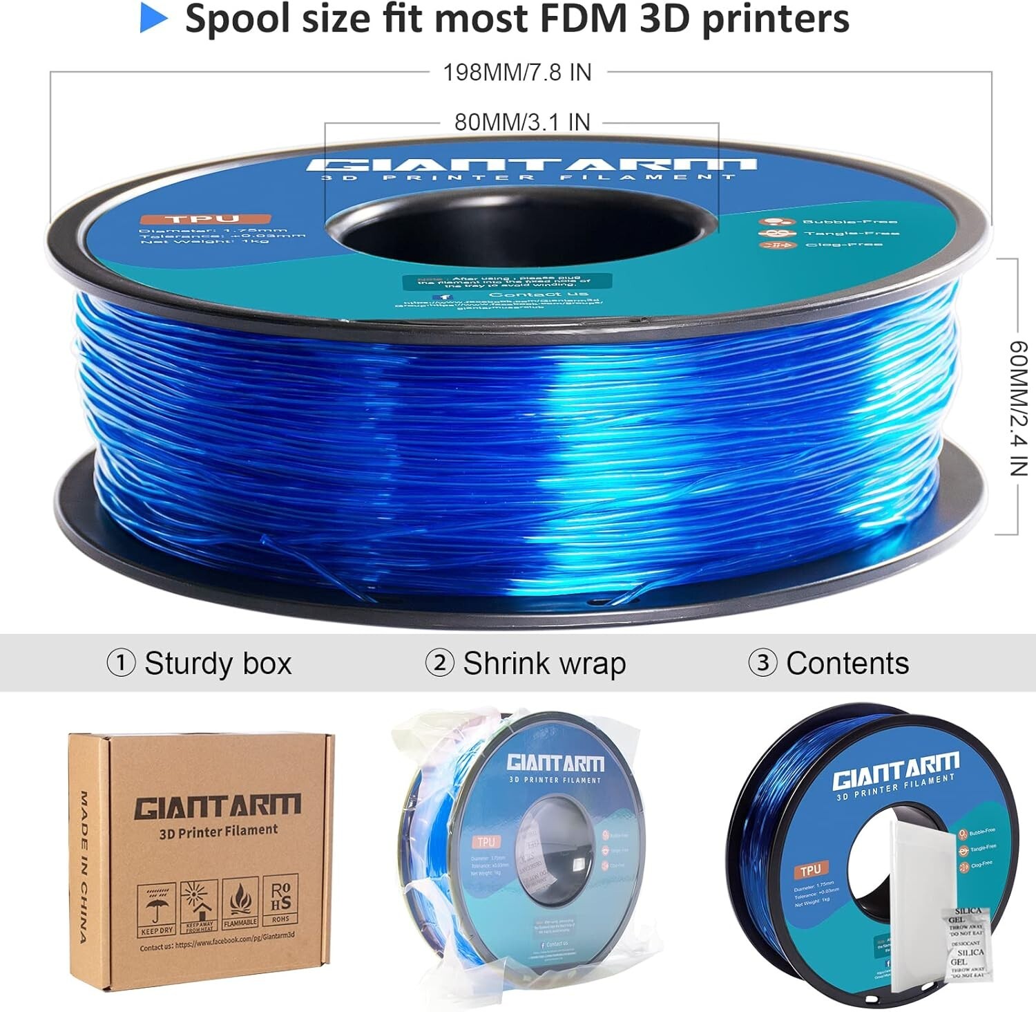 Designed with a focus on convenience and quality, our TPU filament features a clog-free and bubble-free manufacturing process. This means fewer interruptions during your printing journey, allowing you to focus on bringing your ideas to life without the hassle of tangles or breaks. Complete drying and vacuum-sealed packaging ensure that you receive a product that is ready to deliver flawless results right out of the bag.