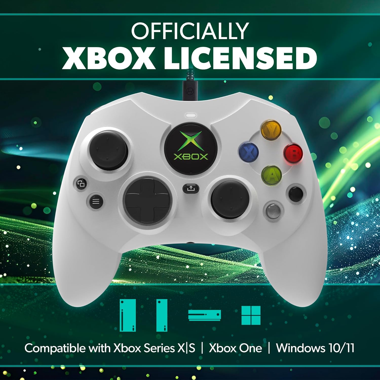 It's Friday night. You just ordered a pizza, there's no school tomorrow and you're about to pull an all nighter with your favorite Xbox Game. It's 2002 and life is good. Travel back in time with the Hyperkin DuchesS, a modernized version of the classic Xbox S Controller. Officially licensed and designed to meet today's gaming demands, the DuchesS features cutting-edge technology such as Hall Effect Sticks for unmatched precision and durability. Share your triumphant moments effortlessly with the integrated Share button for Xbox Series X'S. Feel every action with Dynamic Impulse Triggers and Enhanced Tactile Feedback. The classic black and white buttons are complemented by newly added bumper buttons, seamlessly blending nostalgia with modern functionality. Experience minimal latency with the 10-foot detachable braided USB-C cable, which combines durability with reliability. With a 3.5mm headphone jack, seamless connectivity to headsets ensures an immersive audio experience that enhances gameplay to the fullest. The DuchesS retains the comfort of the original design with modern ergonomics, perfect for marathon gaming sessions. More than just a controller, the Hyperkin DuchesS is a journey through gaming history, designed for players who treasure the past while embracing the innovations of today.