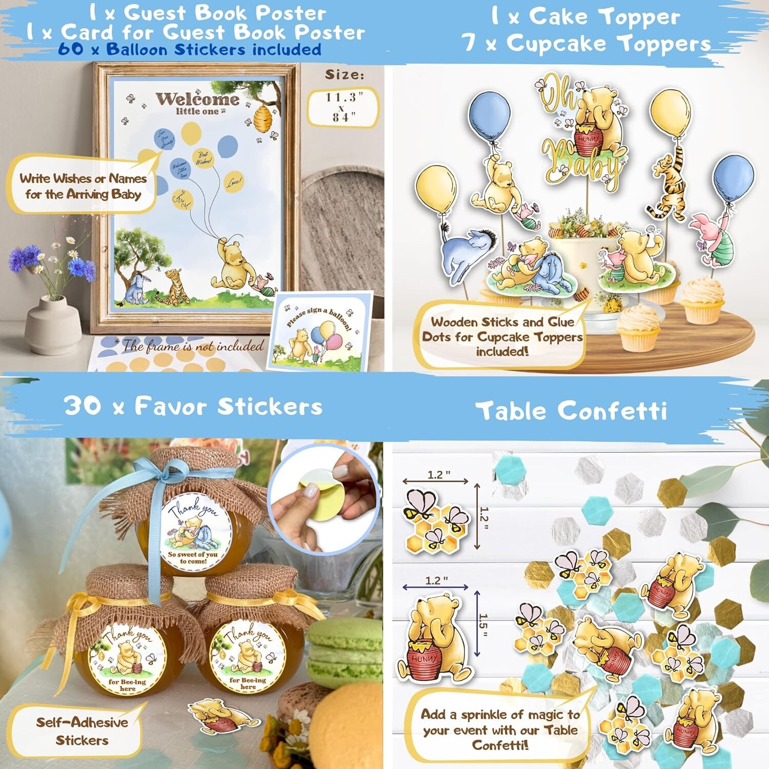 Let us be your partner in creating magical moments. Make your event come to life — order your Winnie the Pooh Baby Shower Decorations Kit today!