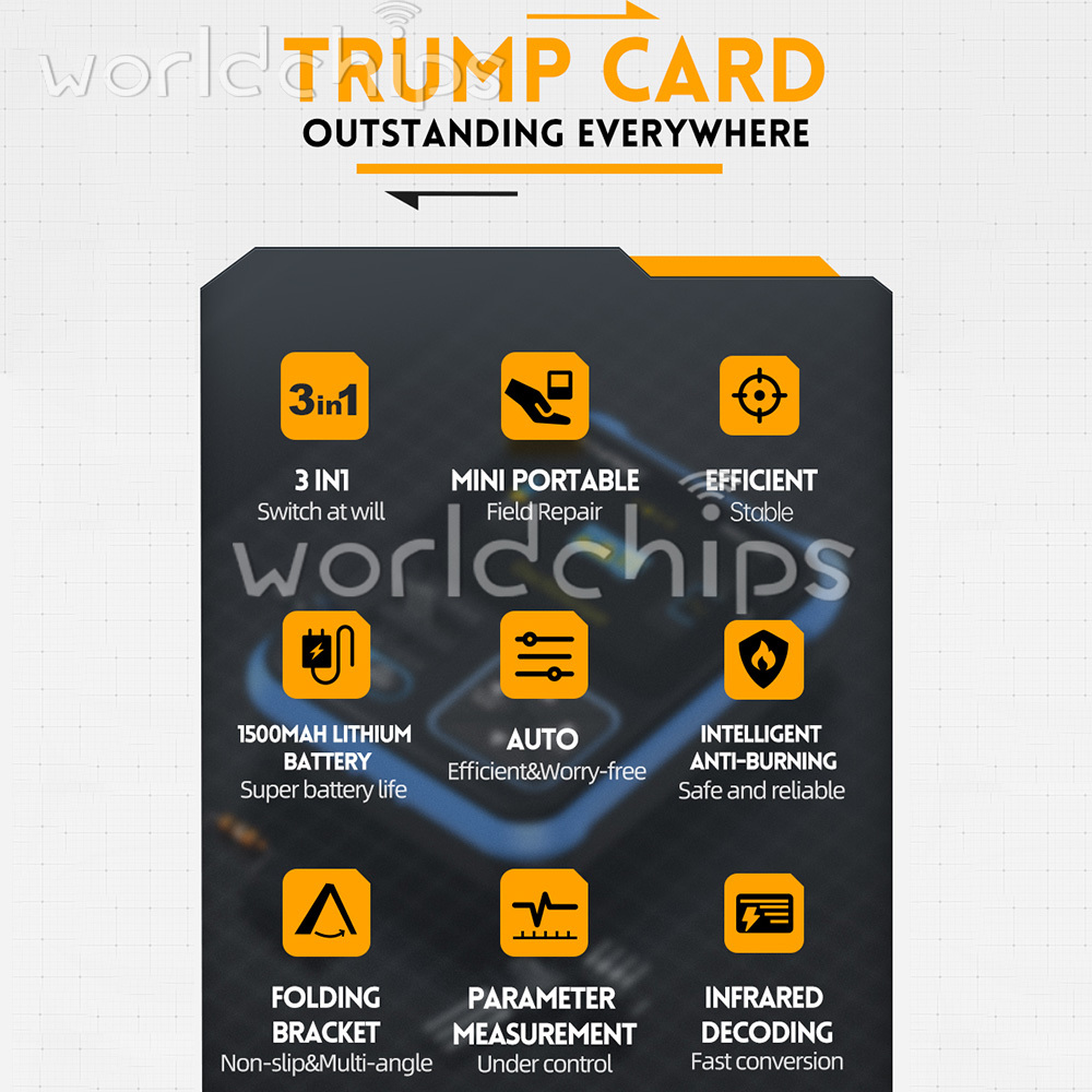 Tool Box Function: Automatically analyze specific Protocol infrared code. Other function modes: including circuit continuity test, 0-40V input voltage measurement, PWM output, 0-32V diode measurement, temperature and humidity sensors measurement, etc.
