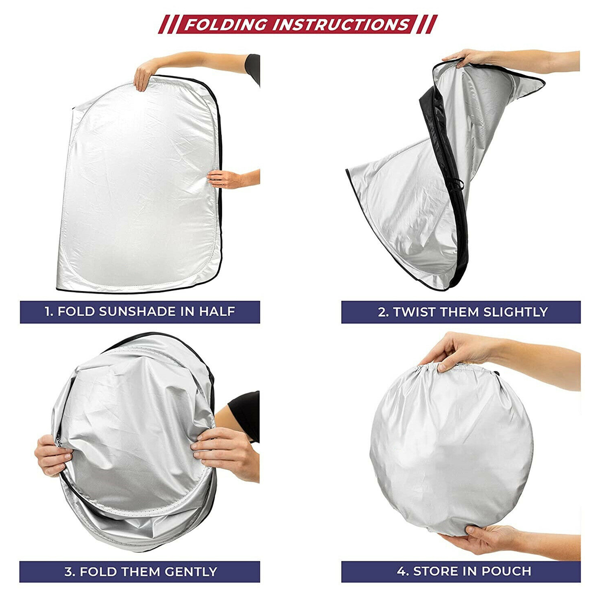 - Easy to use and store: The shade can be easily popped up and folded in seconds for everyday use. You can easily tuck the sunshade into your door pocket.