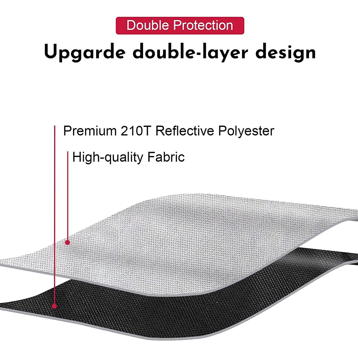 - Upgraded Design: Unlike other products on the market, we use a double layer of heat shield fabric to keep out the sun. The first layer is premium 210T reflective polyester and the second layer is high-quality fabric. Double insulation, and double protection.The best shade and insulation on the market.