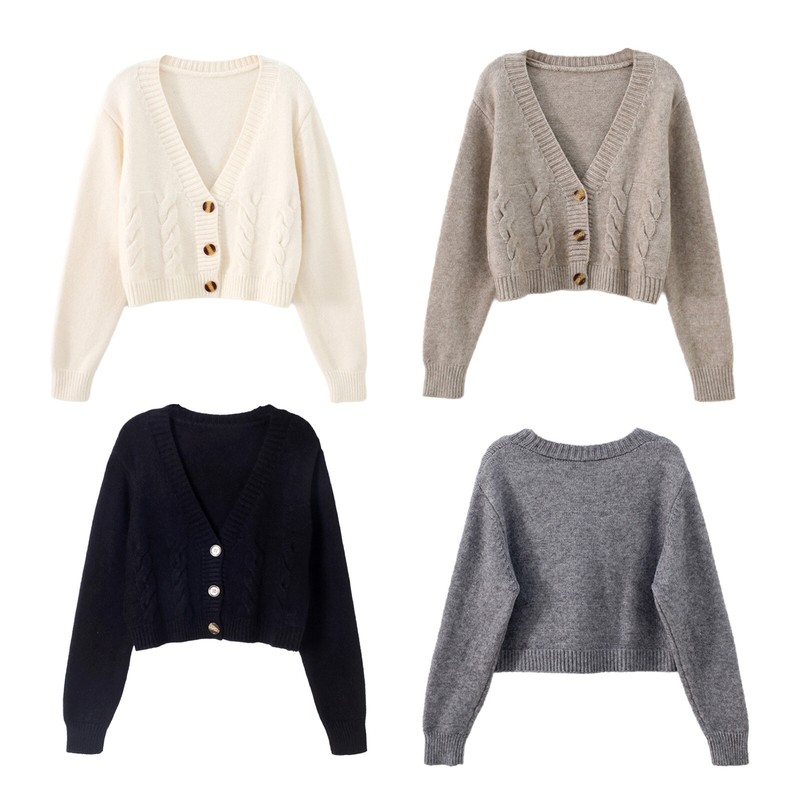 Women Short Sweater Stretch Outerwear Stylish Cardigan High Waist Trendy TopsUSD 13.99