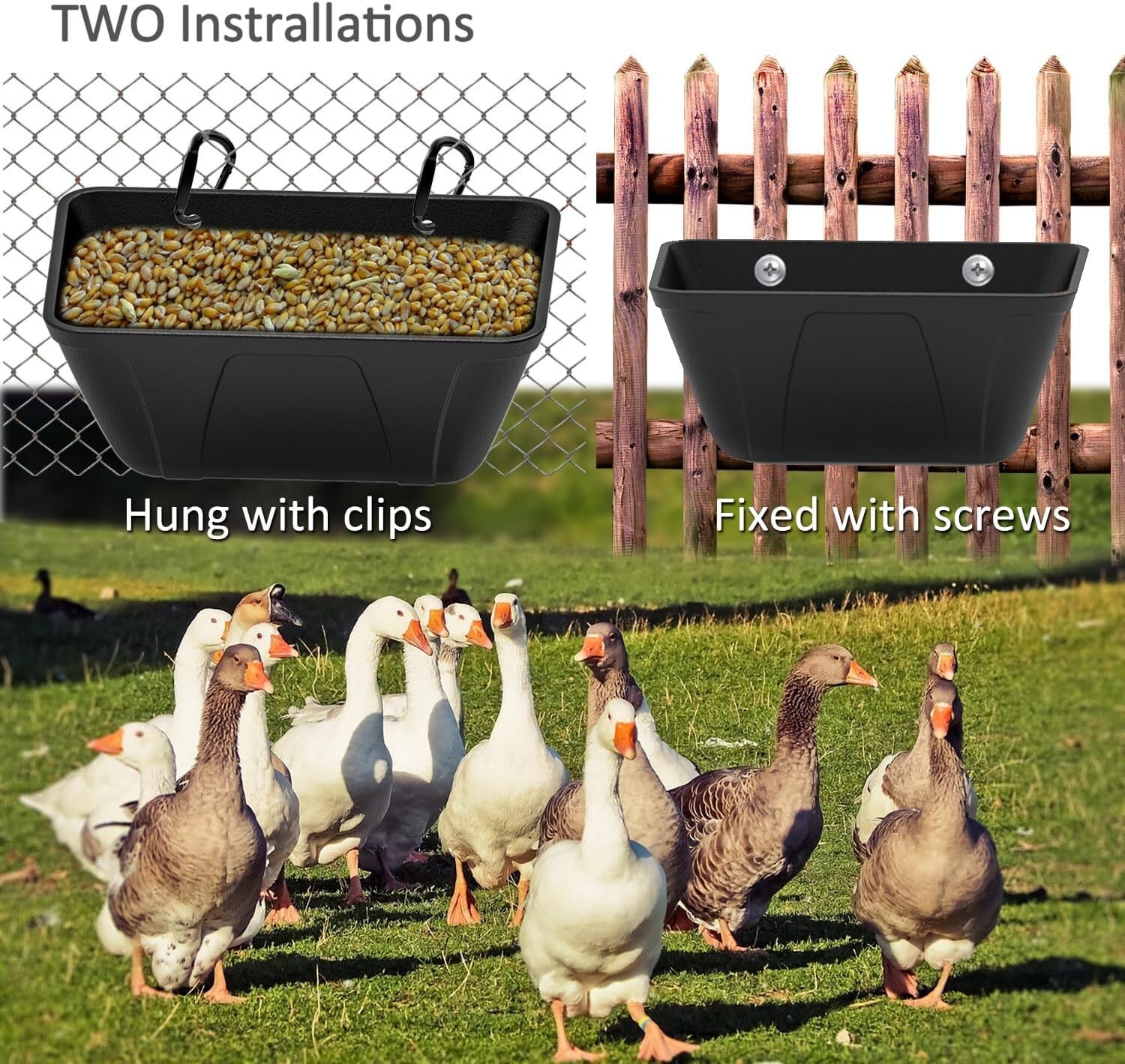 Food-Grade Material: Constructed from food-grade polypropylene (PP), each trough has a capacity of about 4 quarts, ensuring safe feeding for your flock.