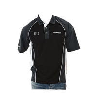This Guinness Panelled Performance Golf Shirt is made from moisture wicking fabric for comfortable leisure wear or a perfect round of 18 holes. This golf shirt is black with charcoal grey and white panels with a subtle white piping trim on the front and back of the jersey. Has stylish details including an embroidered Guinness logo on the left chest, an embroidered "ESTD 1759" on the right chest and Arthur Guinness signature on the right sleeve.