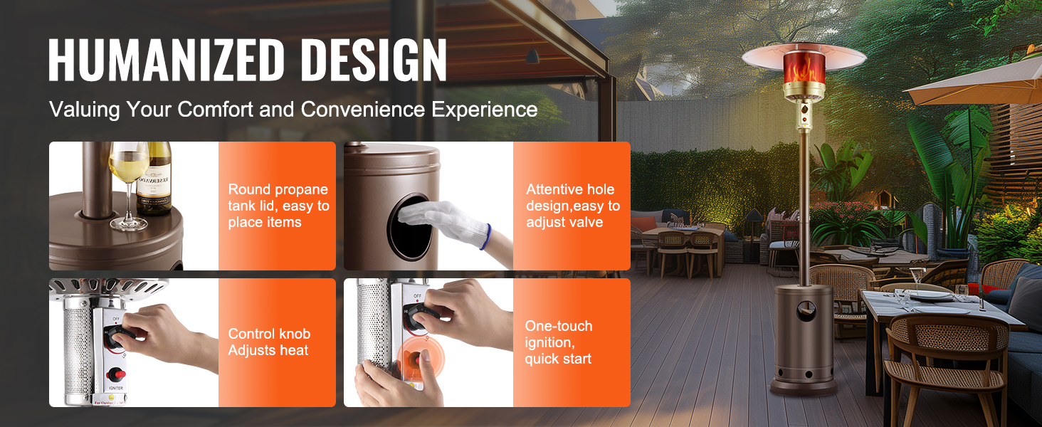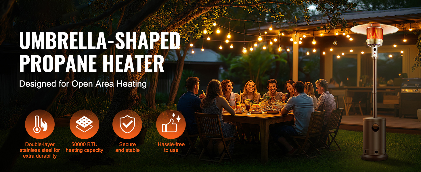 Wide Application: Perfect for gatherings of 6-8 people, this propane heater is ideal for patios, courtyards, guesthouse gardens, and outdoor camping, offering an excellent heating solution for your outdoor space.