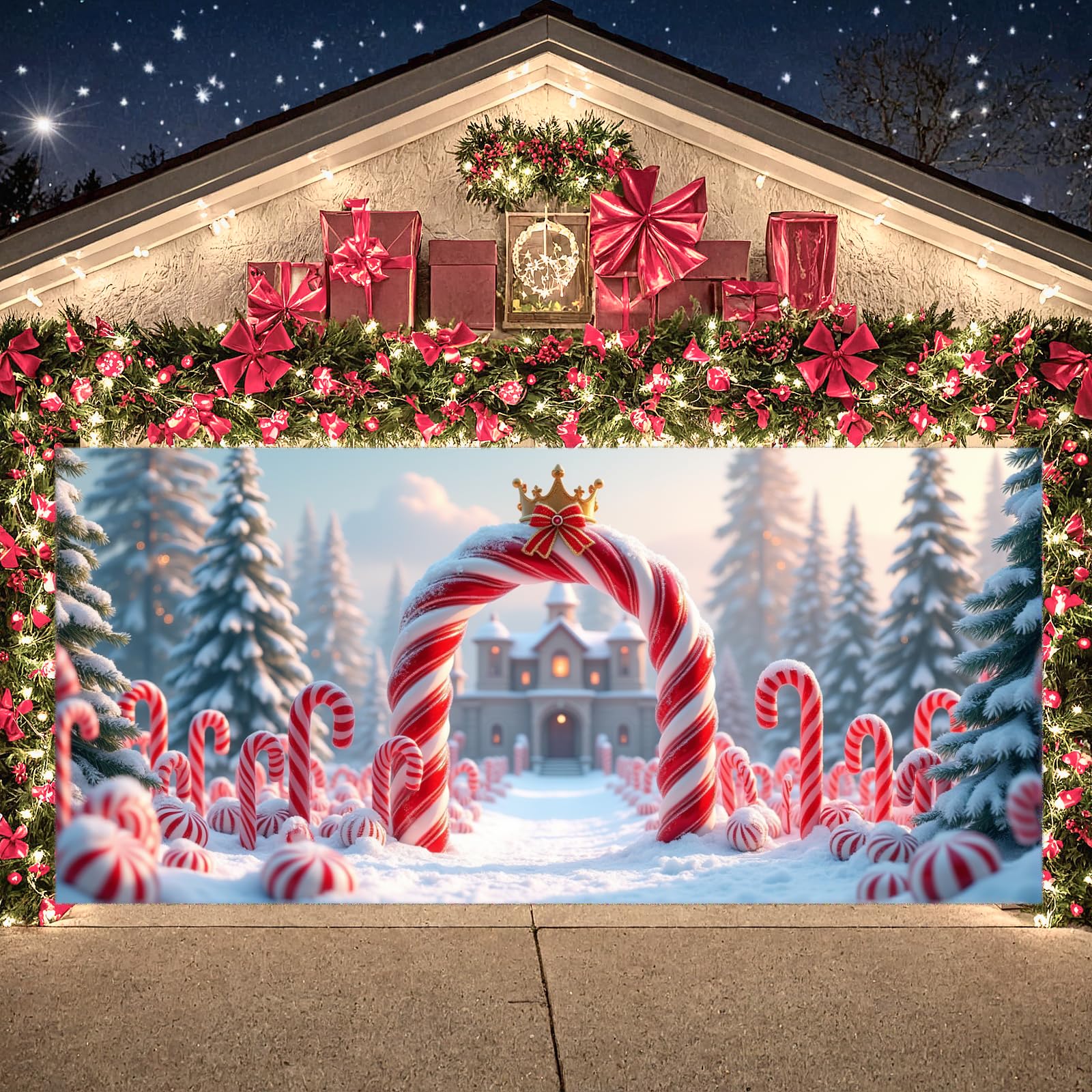 Widely applicable: Large candy cane Christmas banner are the perfect choice for decorating Christmas parties, Christmas Eve, New Year's parties, birthday parties, and can also be used for indoor, outdoor, Christmas tree, wall, window, and other decorations. The garage door christmas cover is large and can also be used as a huge photo background, leaving beautiful memories for friends and family