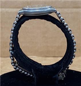 -BAND FITS A SIZE 5-1/2" WRIST AND CONDITION ON BAND HAS COSMETIC SCUFFS AND SCRATCHES.
