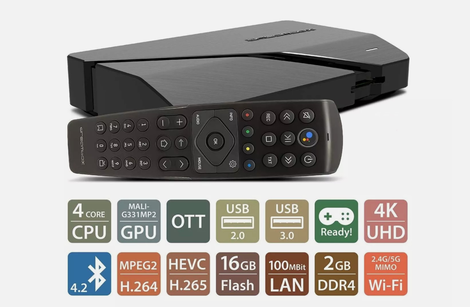 Dreambox Play UltraHD 4K UHD Android TV 11 IP-Receiver black Dual WiFi, LAN, Bluetooth, HDMI