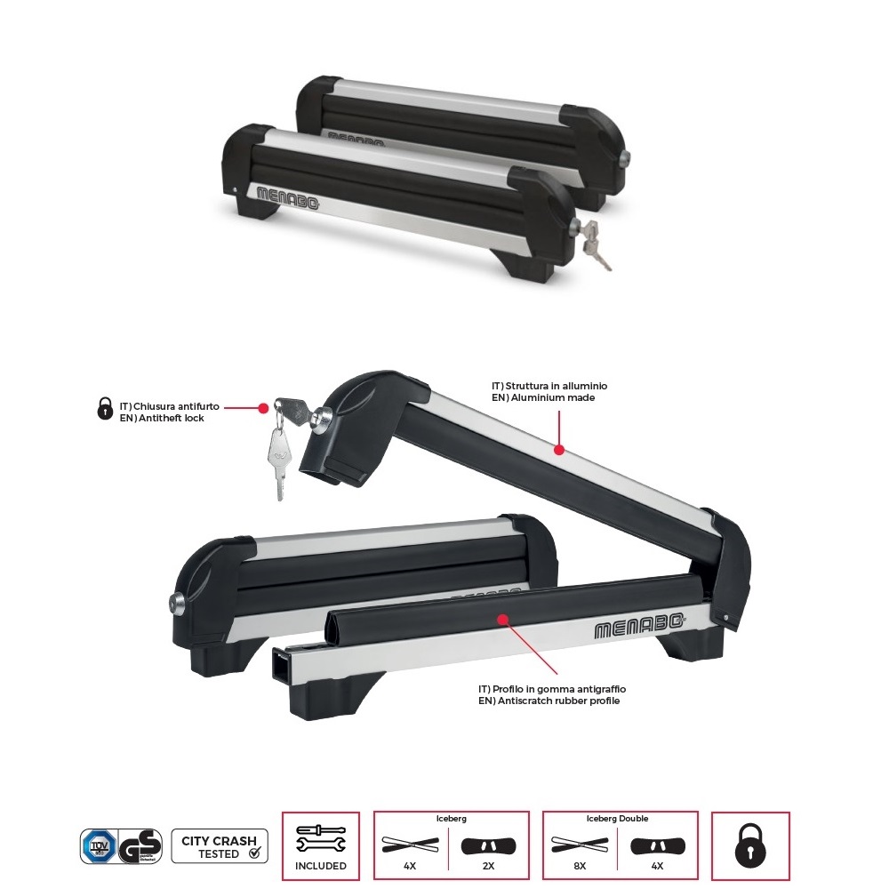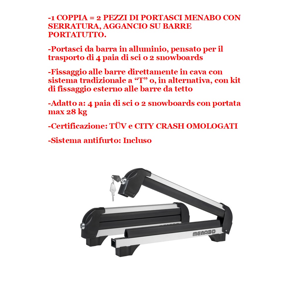 -1 COPPIA = 2 PEZZI DI PORTASCI MENABO CON SERRATURA, AGGANCIO SU BARRE PORTATUTTO.