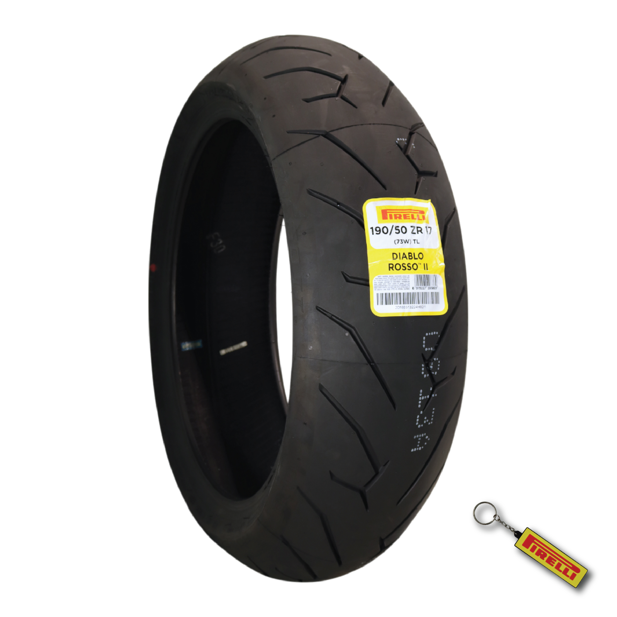 The Pirelli Diablo Rosso II Motorcycle Tire is engineered for riders seeking top-tier performance, durability, and safety. This tire offers exceptional grip and stability, thanks to its advanced dual-compound construction and innovative tread pattern. Great for both street and light track use, the Diablo Rosso II rear tire provides consistent performance in wet and dry conditions. The tire's profile is optimized for enhanced cornering stability and precise handling, giving riders the confidence to push their limits. As a special bonus, this tire comes with a sleek Pirelli keychain, adding a touch of style to your riding gear. Whether you're commuting or carving through twisties, the Pirelli Diablo Rosso II Motorcycle Tire delivers the performance you need. Designed for exceptional handling and grip on both wet and dry surfaces, this high-performance rear tire is great for sport and touring bikes. The innovative tread design features an asymmetric pattern that ensures efficient water displacement and superior traction. The dual-compound technology enhances tire longevity while maintaining high levels of grip across varying conditions. Additionally, the specially developed profile provides improved stability during cornering and acceleration. The included stylish Pirelli keychain makes for a great accessory for motorcycle enthusiasts.