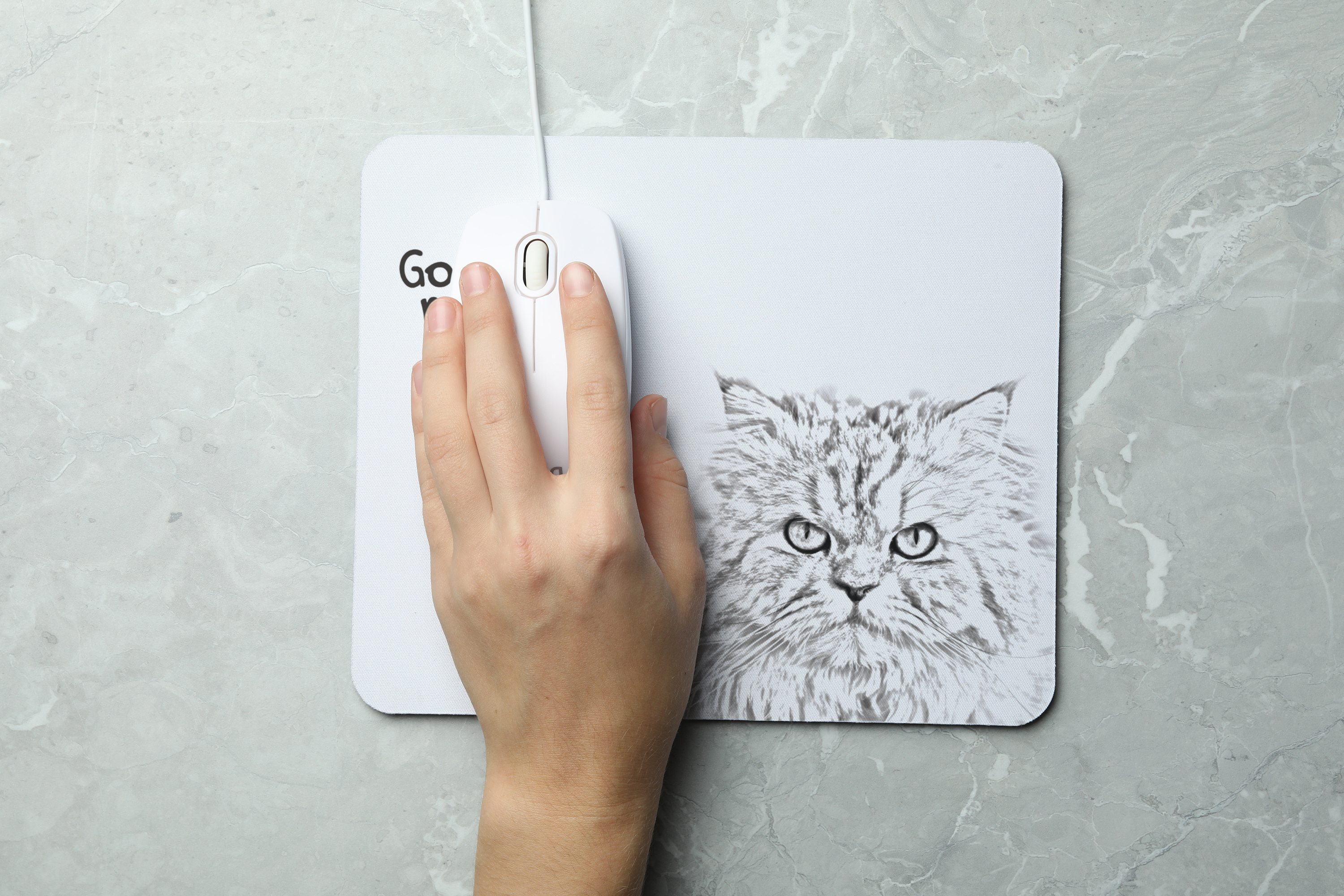 Perzische kat - muismat met bedrukking, gepersonaliseerde muismat met kat, uniek gadget voor kantoorpersoneel van het merk Art-Dog Art-Dog