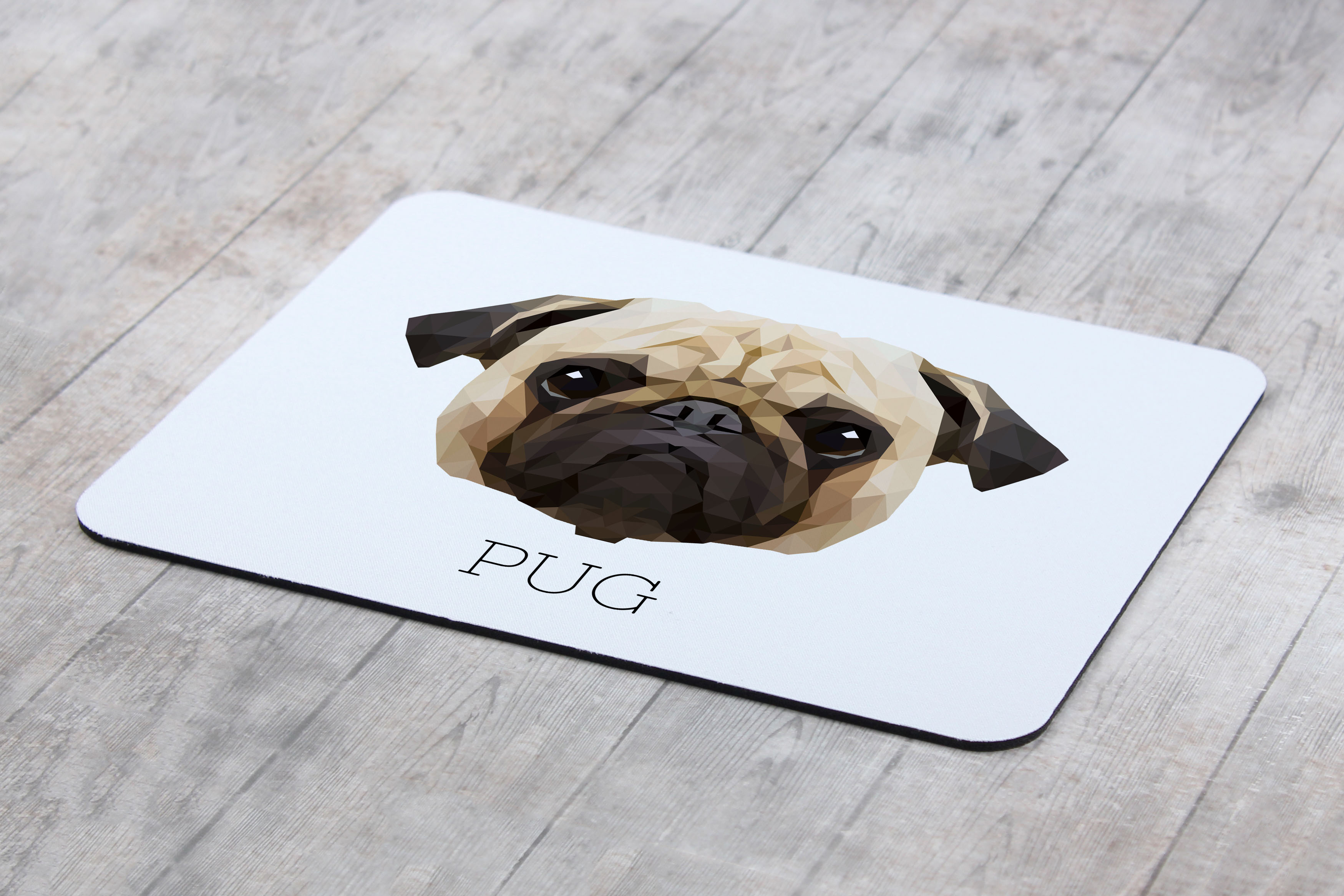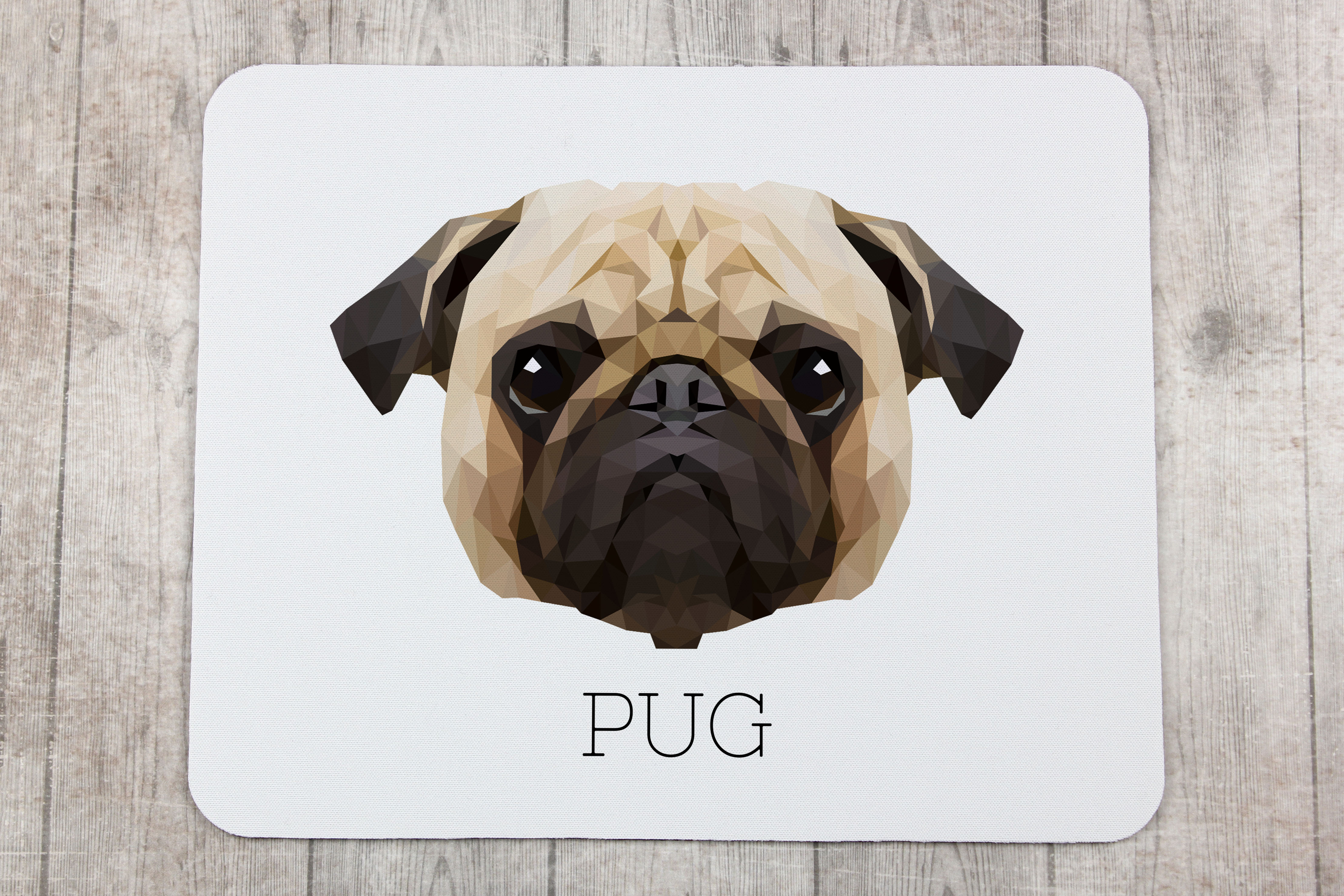 Mopshond - geometrische muismat met foto en tekst van Art-Dog Art-Dog