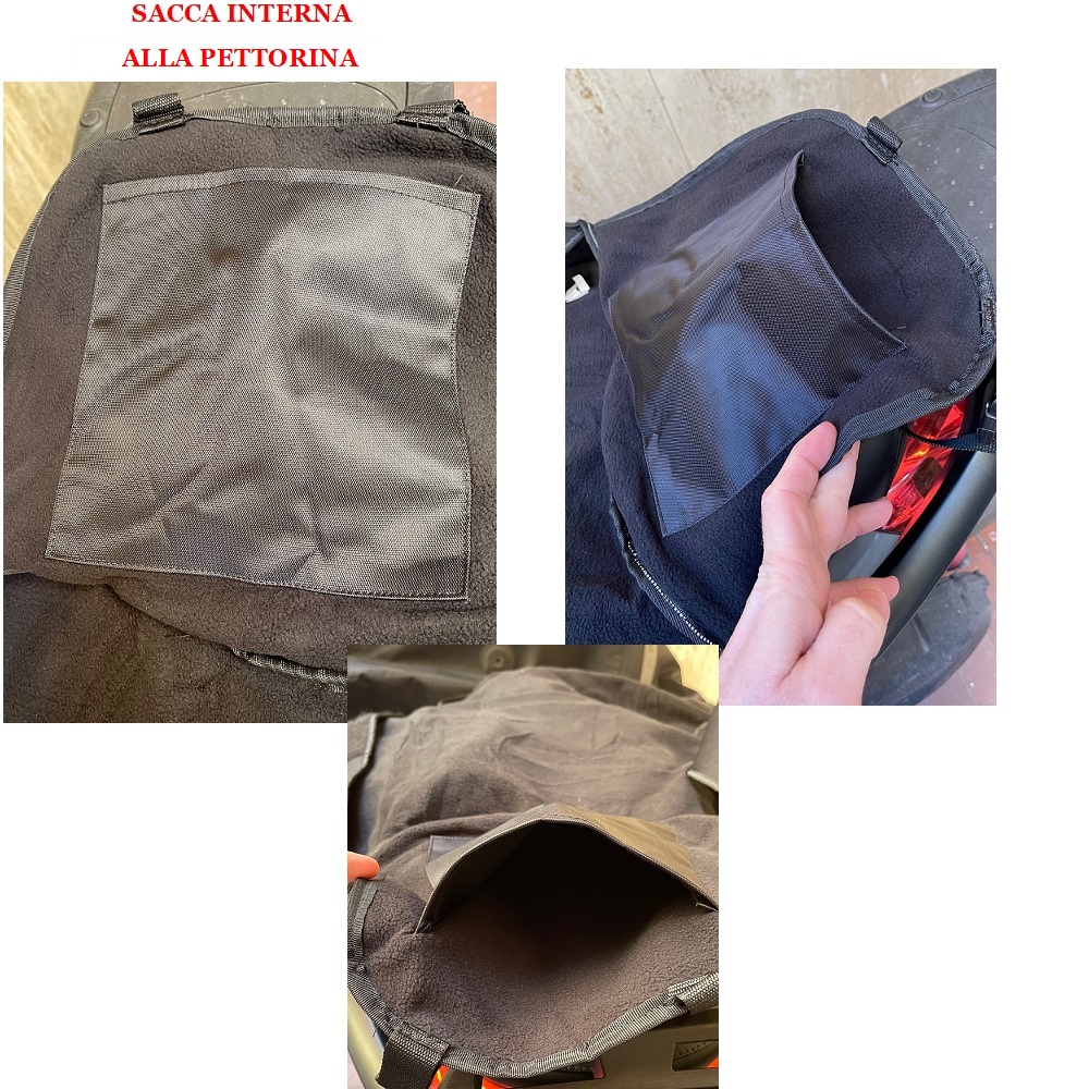- tasca interna alla pettorina per riporre cellulare, chiavi e oggetti vari