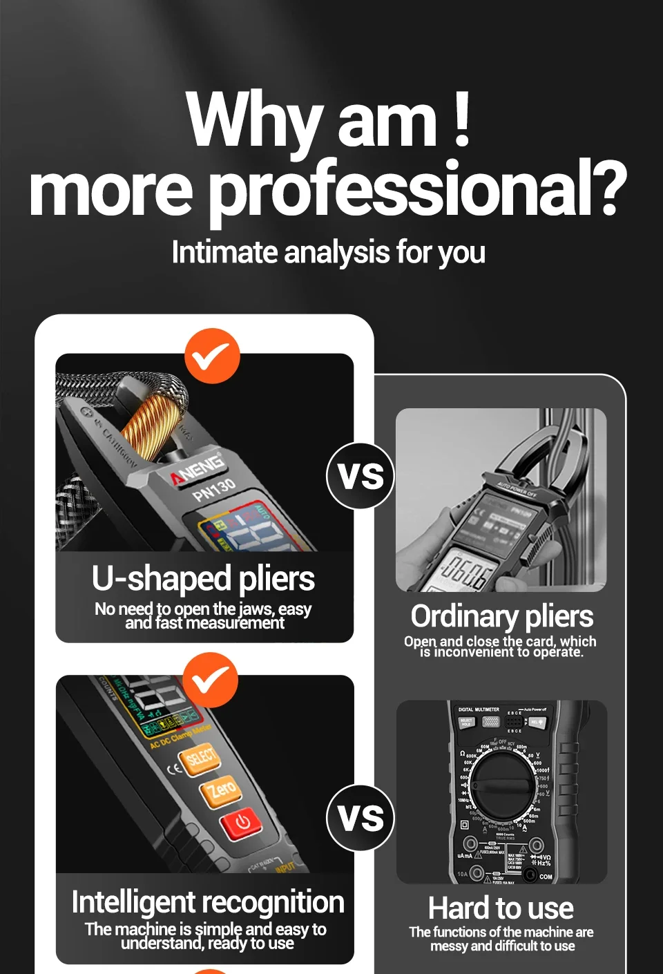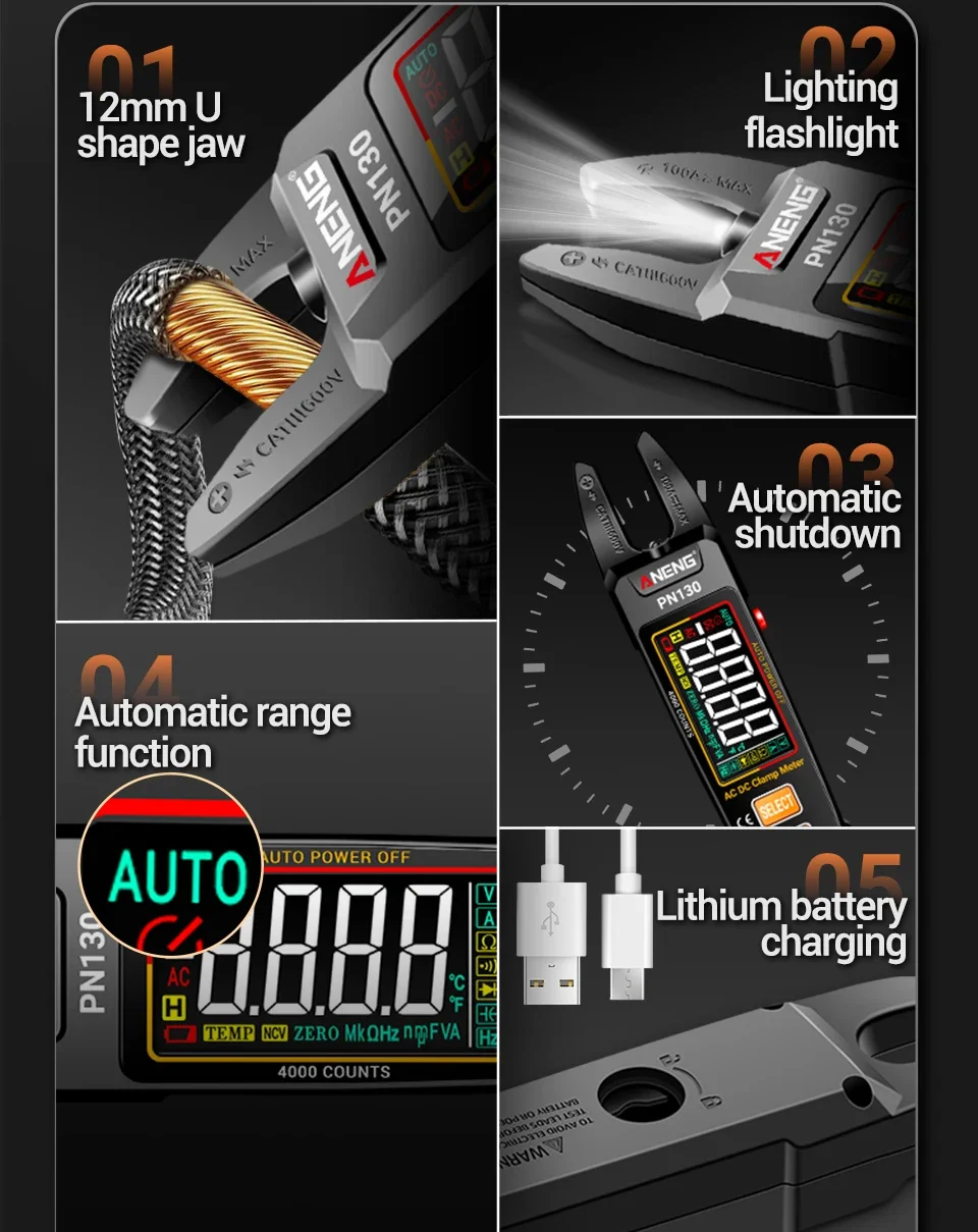 ANENG PN130 Mini Clamp Meter AC/DC 100A Current Voltage 4000 Counts Protable Multimeter Capacitance Resistance Testers