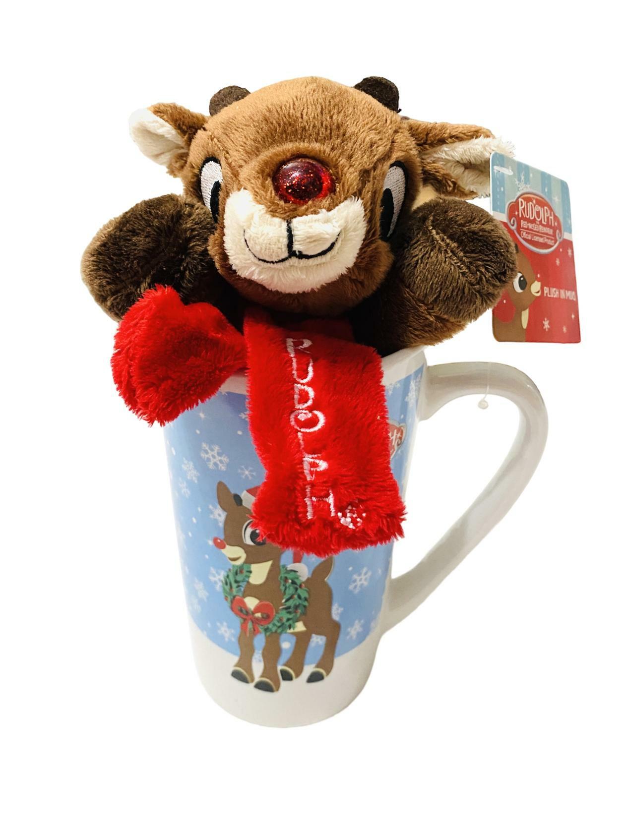 Dan Dee Rudolph the Red-Nosed Reindeer Mug and Plush Rudolph. Ceramic, dishwasher, and microwave safe. 4" plush Rudolph, and 12 fl. oz. capacity.