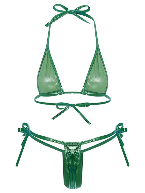 Women Lingerie Sexy Bra Clubwear Set Tempting Thong Metallic Bralette Top Shiny