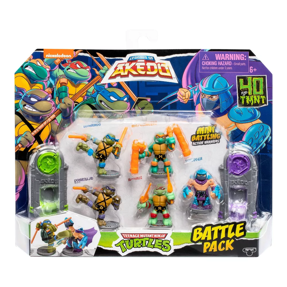 The Legends Of Akedo Teenage Mutant Ninja Turtles Battle Pack includes everything kids need to battle straight out of the box! Battle with 5 figures & 2 Battle Controllers!