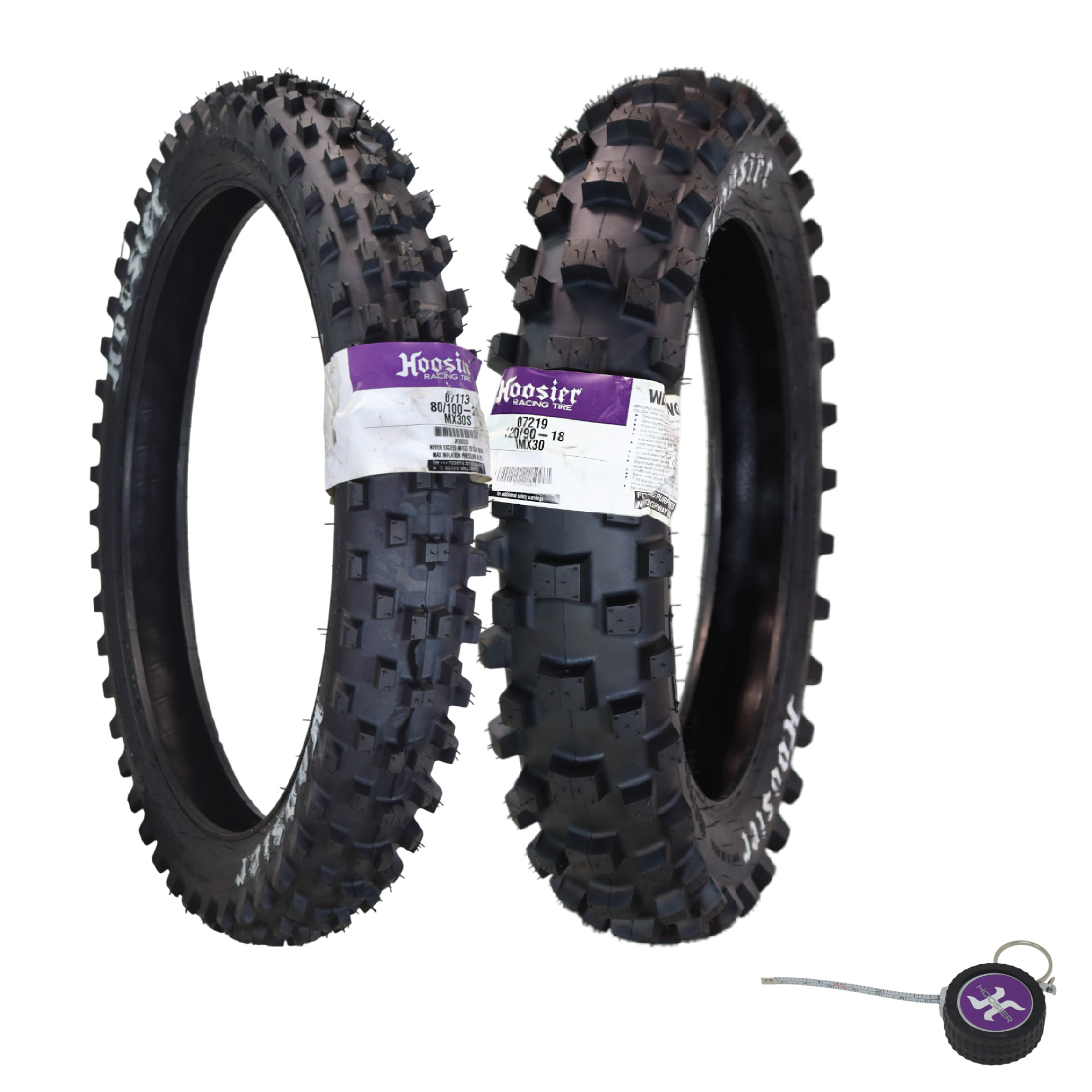 Complete with a Hoosier Keychain, this set is ideal for dirt bike enthusiasts who value both functionality and style. Equip your 250cc or 450cc bike with the Hoosier Racing MX Tire Set and experience the ultimate in performance, control, and reliability. Trust Hoosier to elevate your ride and help you conquer the racecourse with confidence and speed.