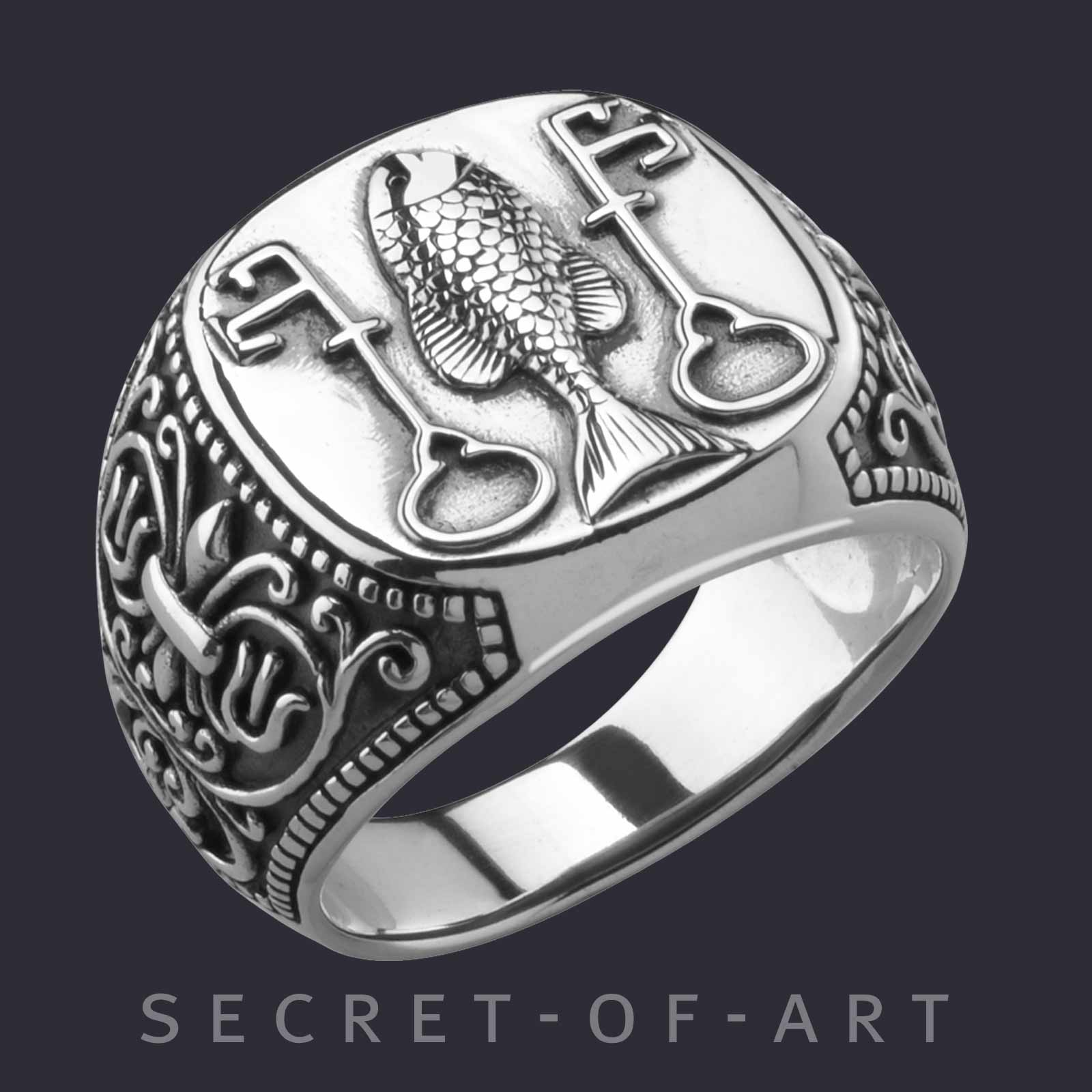 Fisch Ring 925 Silber Fischer Schlüssel Religiös Jesus Kirche Katholisch Ichthys