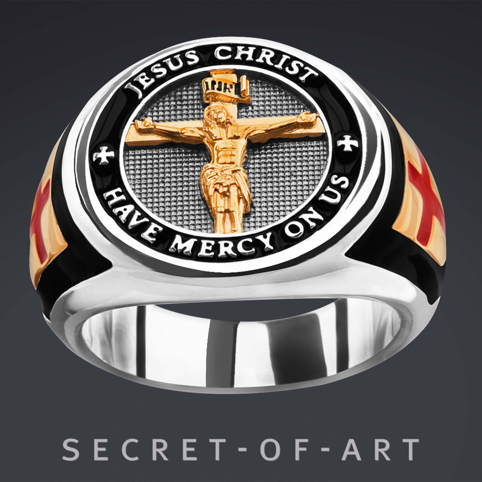 Jesus Ring Silber 925 Kreuzigung Katholisch Religiös 750 Gelbgold-Vergoldung