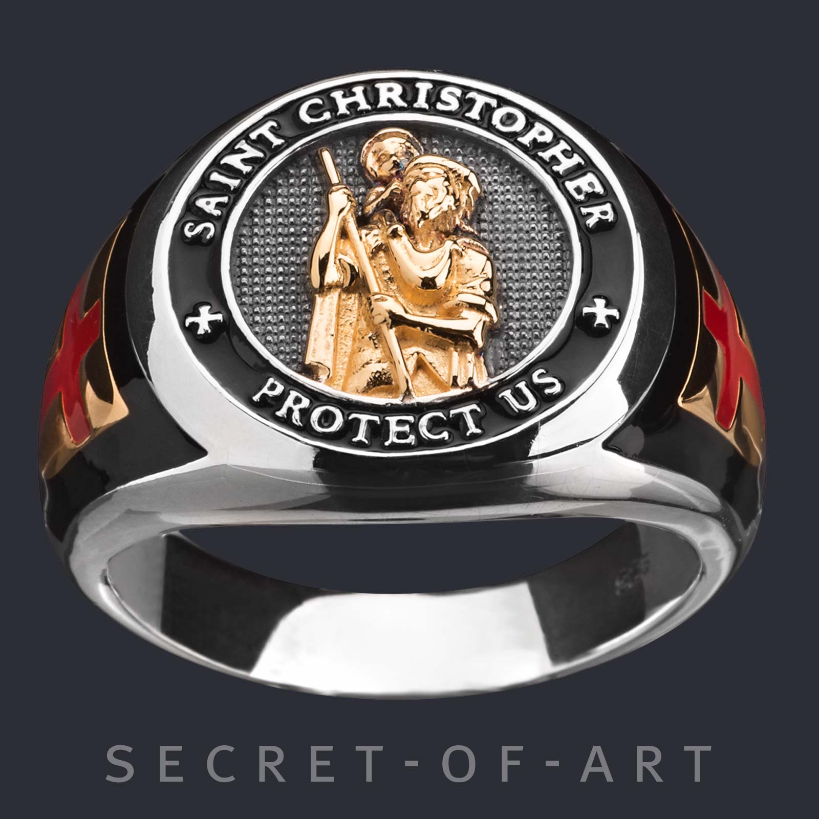 St Christopher Ring Heiliger Christopherus 925 Silber 750 Gelbgold-Vergoldung