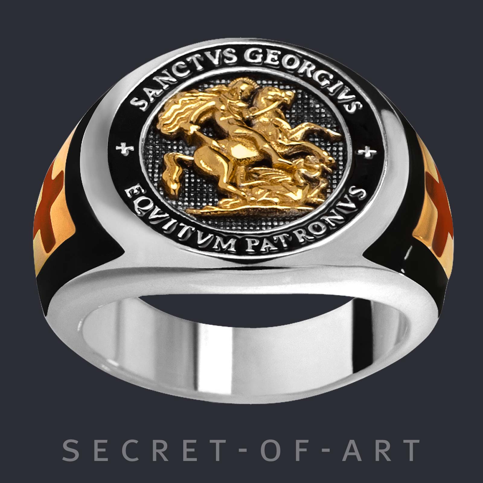 St Georg Ring Sankt 925 Silber 750 Gelbgold-Vergoldung Templar Siegelring Drache