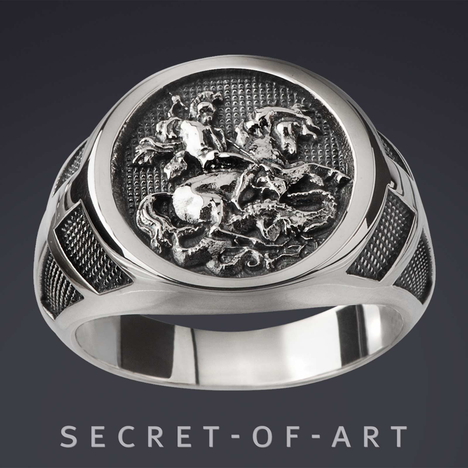 Sankt St Georg Ring 925 Silber Drache Russland Heiliger Schutzpatron Ritterorden
