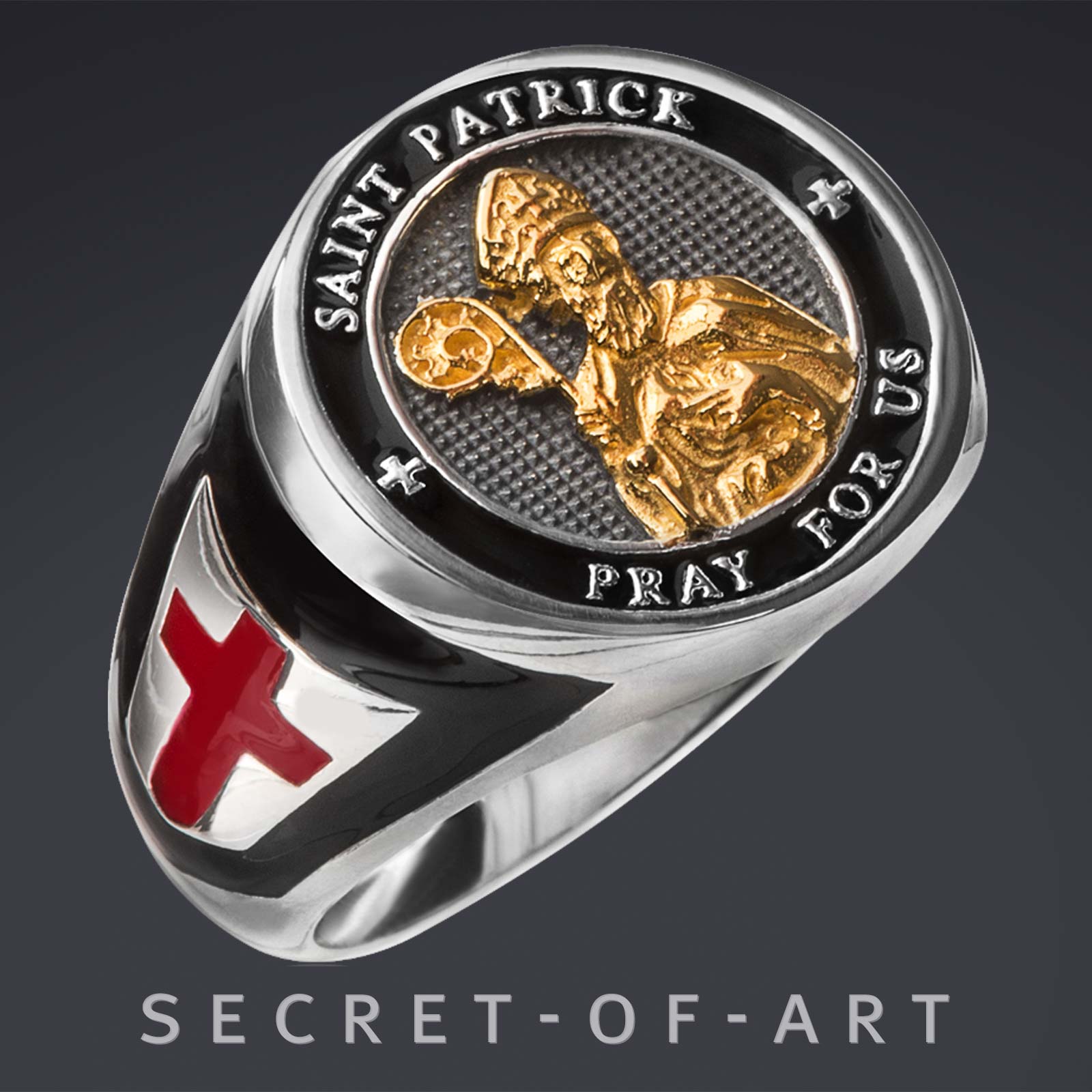 Saint St Patrick Ring 925 Silber Irland 750 Gelbgold-Vergoldung Keltisches Kreuz