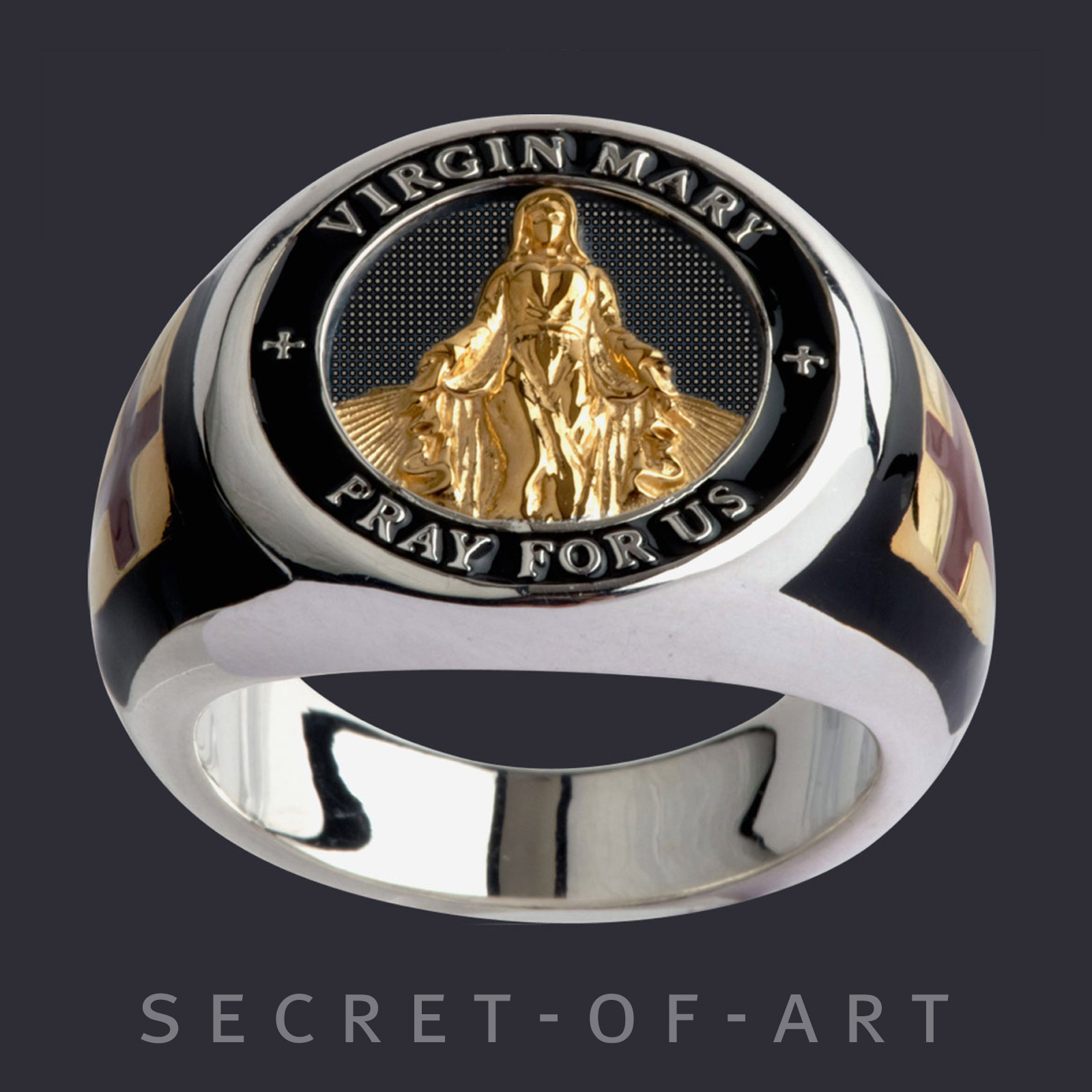 Heilige Jungfrau Maria Ring Jesus Virgin Mary 925 Silber 750 Gelbgold-Vergoldung