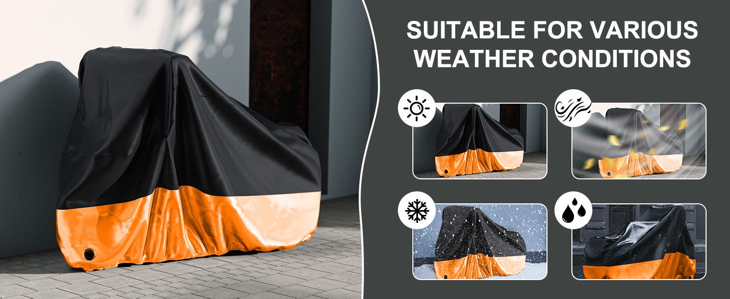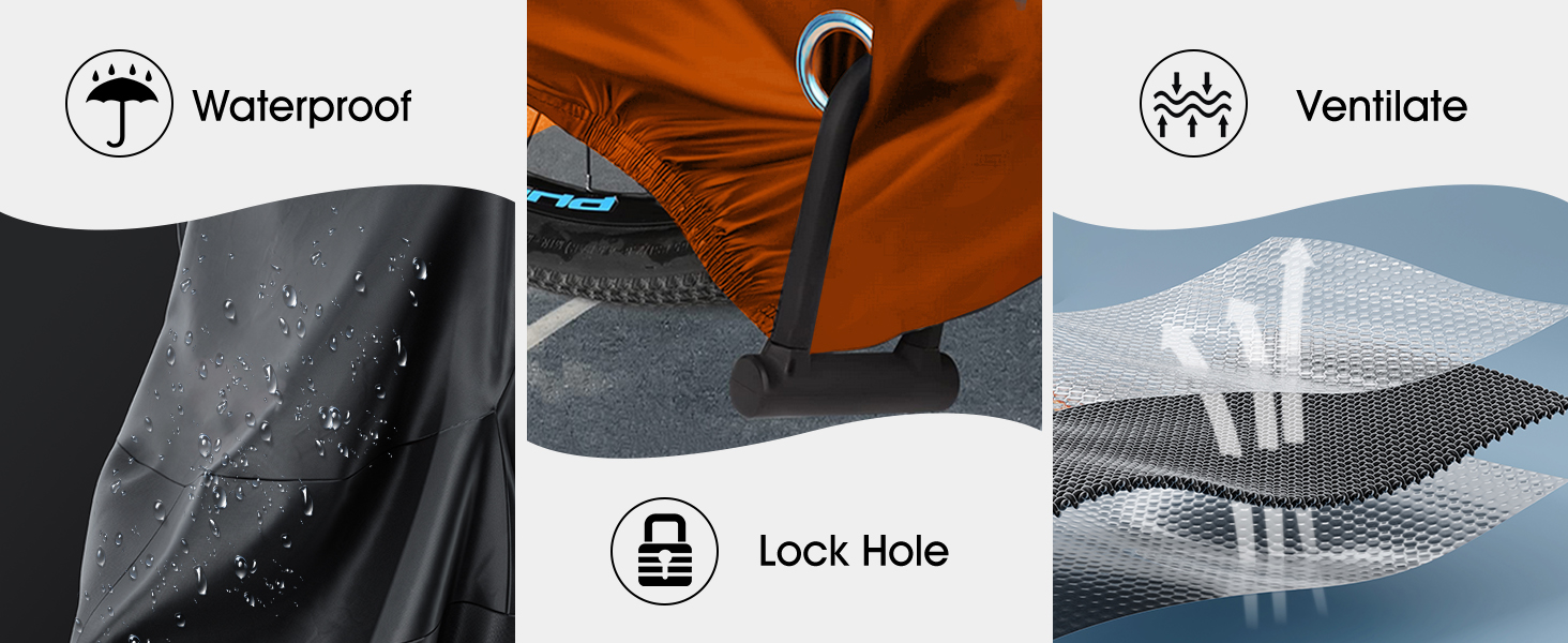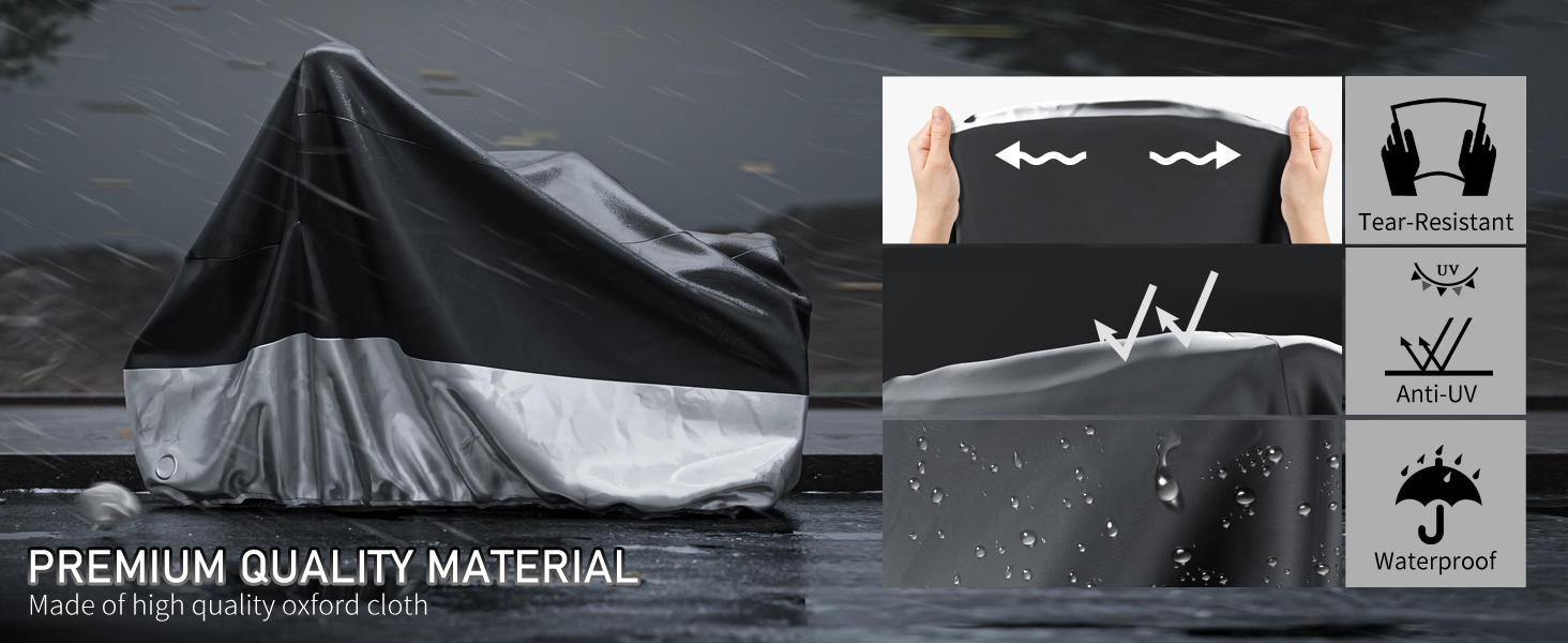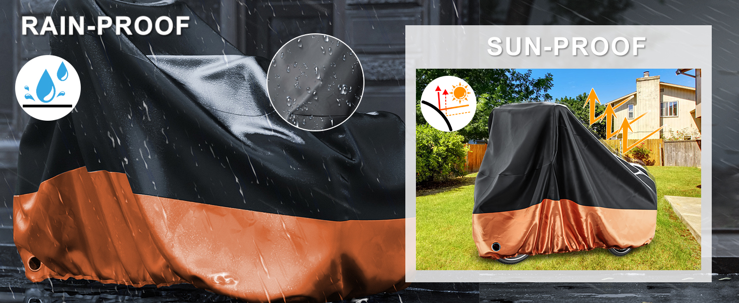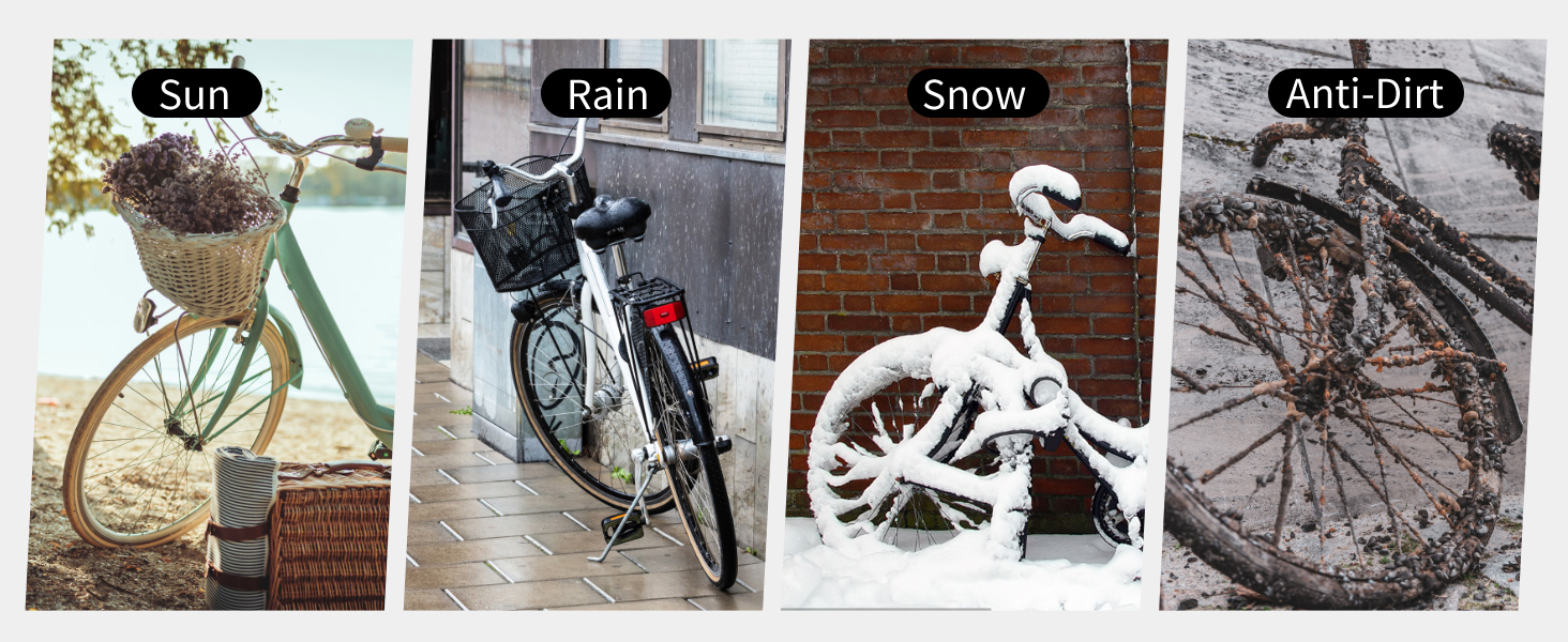 High Quality MaterialPolyester fabric with UV and water repellent treatment, protect your bike from scratches, sun damage, morning dew, rain and dirt. Ultraviolet-proof up to 50+. |