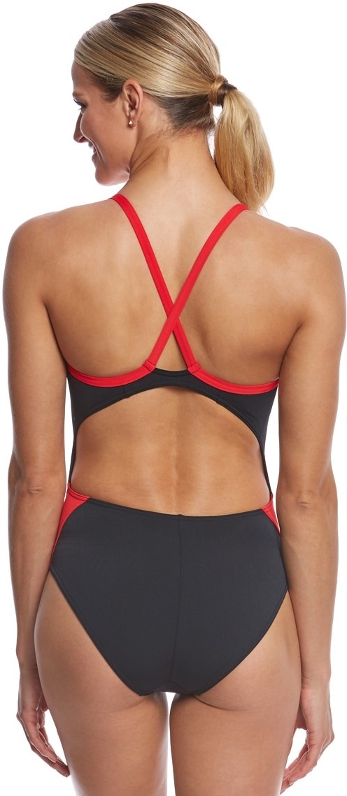 MP Michael Phelps Women's Splice Mid Back 1 Piece Swimsuit, Black/Red - 26