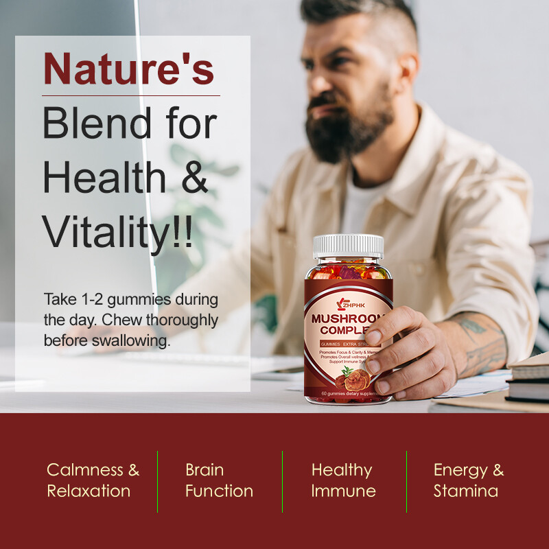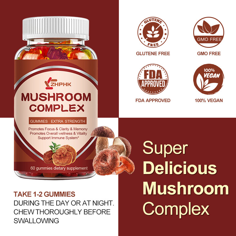 Features: - POTENT ADAPTOGEN BLEND | 10 MUSHROOMS | 2500 MG PER SERVING - Explore the amazing health benefits of mushrooms in the most delicious way! Our new mushroom gummies complex is made with lion’s mane powder, reishi powder, shiitake powder, cordyceps powder, chaga powder and many more. Loaded with health-boosting vitamins, minerals, and antioxidants, this medicinal mushroom supplement helps your body adjust to physical, chemical, biological stress and produce nerve growth factors. - ENERGY & IMMUNE BOOSTER SUPPLEMENT - Naturally rich in beta-glucans, mushrooms - particularly shiitake, reishi mushrooms - help to reinforce an immune system's defense and protect against free radicals that can damage cells and impact health. Our natural immune support blend also helps fight chronic fatigue syndrome and promotes healthy cholesterol levels. - POWERFUL NOOTROPIC FORMULA - Nootropics are natural brain enhancers designed to improve cognitive performance. They are amazing natural alternatives to coffee and energy drinks. Take 2 or more gummies per day to boost your energy levels and productivity, sharpen focus and even increase your athletic performance. Working as a focus and memory supplement for the brain, raw mushroom powder extract is an incredible brain superfood that improves memory recall, reduces brain fog, and brings clarity. - TOP QUALITY GUARANTEE - To create our mushroom complex supplement we use WHOLE MUSHROOM FRUITING BODIES with no fillers, mycelium, extra starch or grains. Each delicious mushroom powder filled gummy with a natural flavor is free of gelatin, gluten, soy and artificial ingredients. They are NON-GMO, VEGAN and vegetarian friendly.