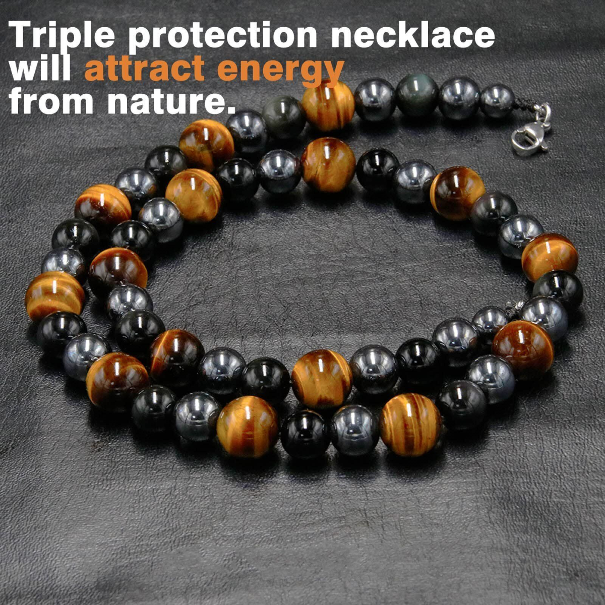 Hematite Obsidian Tiger Eye Beads Necklaces Men Fashion Triple Protection Necklaces Women for Magnetic Health Protection Jewelry