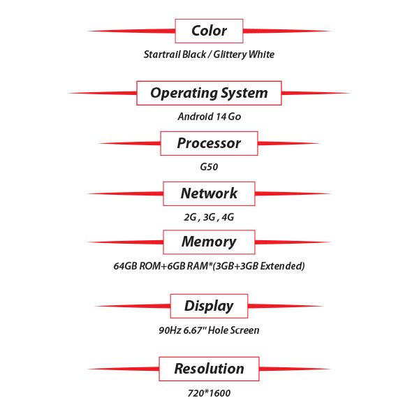 - Processor: Powered by the MediaTek Helio G50 chipset, an octa-core