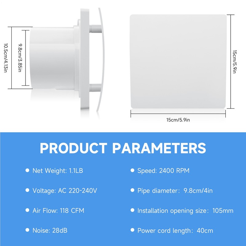▶Wide application: This bathroom fan is very suitable for kitchens, bedrooms, offices, basements, storage rooms, garages and other areas that require continuous or continuous ventilation.