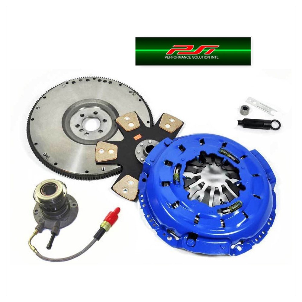 PSI Stage 4 clutch kit is a direct factory replacement clutch kit and it's designed for those who seek the ultimate in clutch performance and reliability. PSI clutch kit includes only the highest grade clutch components from the world's leading racing clutch manufacturers. The 6-puck copper ceramic (also known as MIBA) disc features 12 high-coefficient friction pads that are resistant to slippage and ensures long lasting life. The heavy-duty solid spline center unit boasts heat treated chromoly for the maximum power and durability. The PSI pressure plate features special single diaphragm design to increase clamp load. It features induction hardened diaphragm, CNC machined castings, stronger drive straps and rivets. PSI pressure plate provides smooth and precise feel with easy modulation. All PSI pressure plate is load tested on a special testing tool for quality assurance.