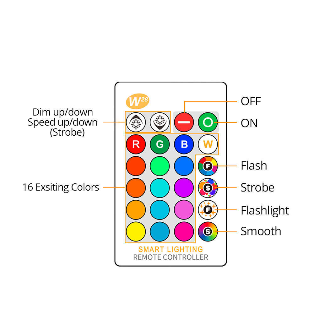 * One remote control can control all bulbs. Synchronization is a revolutionary innovation, it is ideal for environments where multiple bulbs, such as fanlights, downlights, chandeliers, etc., are used together. When we use flash mode and smooth mode, the rhythm of the color changing of the bulb can be consistent.