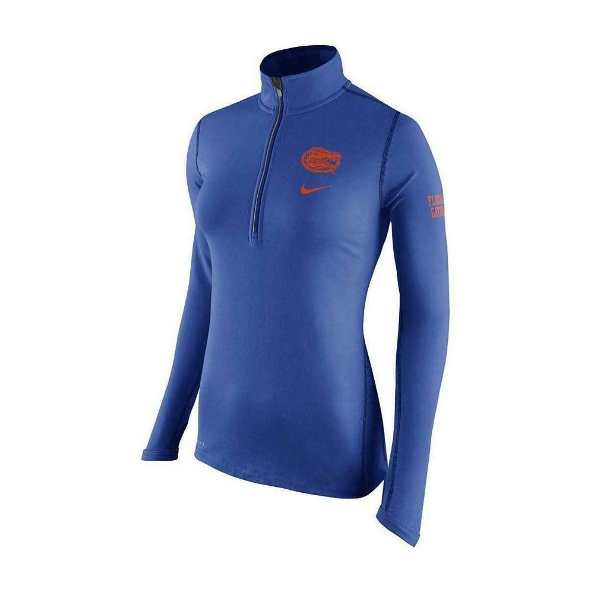 Show your style and team spirit when you step into any Florida event in the Nike Women's Florida Gators Element Half-Zip Shirt. This classic silhouette features integrated Dri-FIT technology that wicks moisture away to keep you cool and dry. A silicon heavy duty heat transfer team logo on the left chest pairs with the contrasting team-colored accents to let everyone know your Gator pride runs deep.