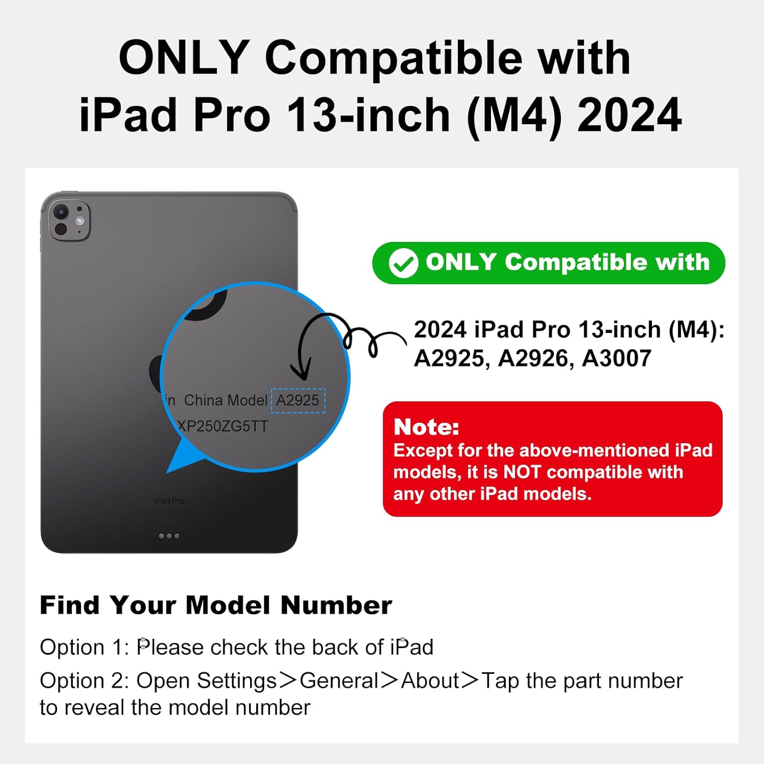 ONLY compatible with iPad Pro 13-inch (M4) 2024 A2925 or A2926 or A3007