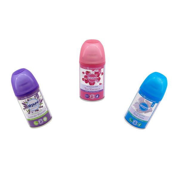 Entdecken Sie die Vielfalt der Airpure Air-O-Matic Nachfülldosen und verleihen Sie Ihrem Zuhause einen lang anhaltenden und angenehmen Duft. Bringen Sie Frische und Atmosphäre in jeden Raum und lassen Sie sich von unseren erstklassigen Düften verzaubern.