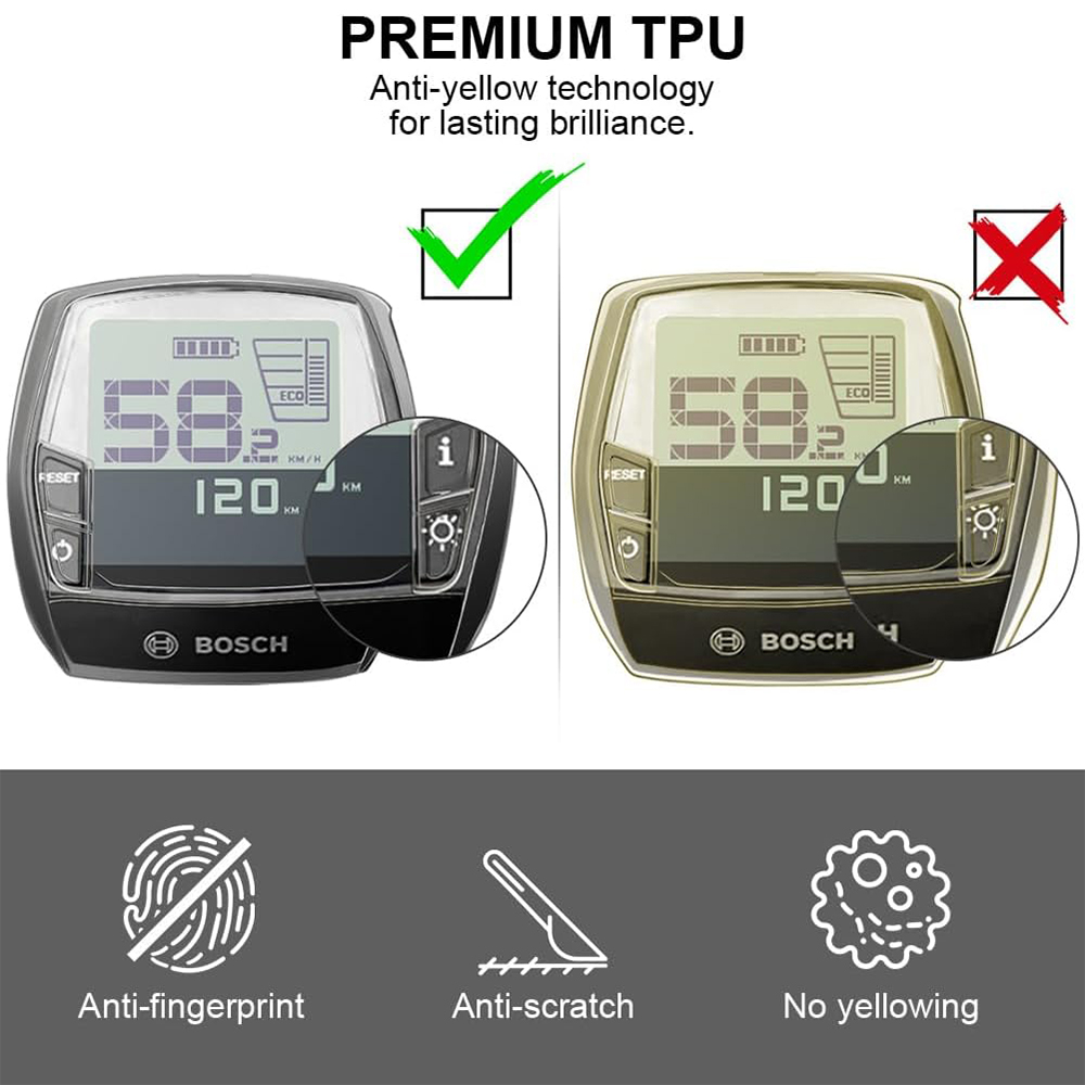 Description: 【Waterproof】This for E-Bike Displays cover provides reliable all-round protection, even in heavy rain. 【Unrestricted operation & transparent】you can press all buttons and clearly read information. 【High-quality】High-grade TPU material, will not turn yellow for two years, easy to care for, not greasy, high-definition display. 【Easy to use】This case is an accessory specially developed for the Bosch Intuvia and fits perfectly around the display.