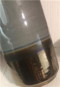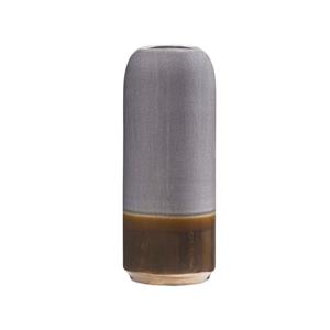 This hand-made ceramic vases flaunt a sleek light grey glaze with metallic bronze base for beautiful globally inspired look.