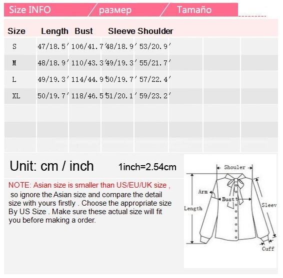 2. The label size is Asian size, the parameters of each size are measured by placing the product on a flat table to measure its outer size. Please measure yourself before ordering, if you are not sure, please contact us.