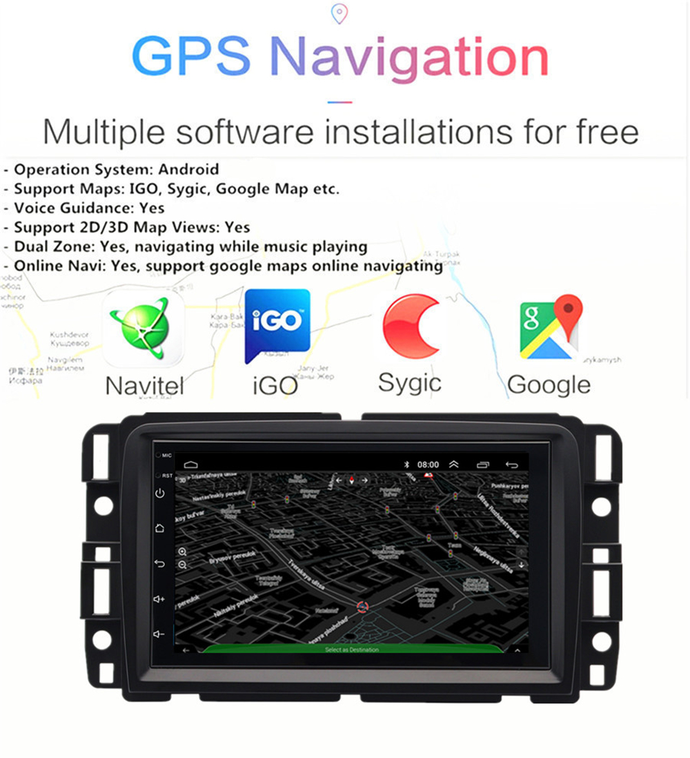 - Operation System: Android 14 - Support Maps: IGO, Sygic, Google Map etc. - Voice Guidance: Yes - Support 2D/3D Map Views: Yes - Dual Zone: Yes, navigating while music playing - Online Navi: Yes, support google maps online navigating |