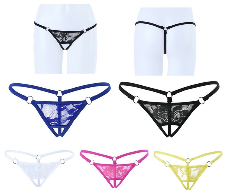 Women Flower Embroidery Crotchless Panties Low Waist T-back Briefs.