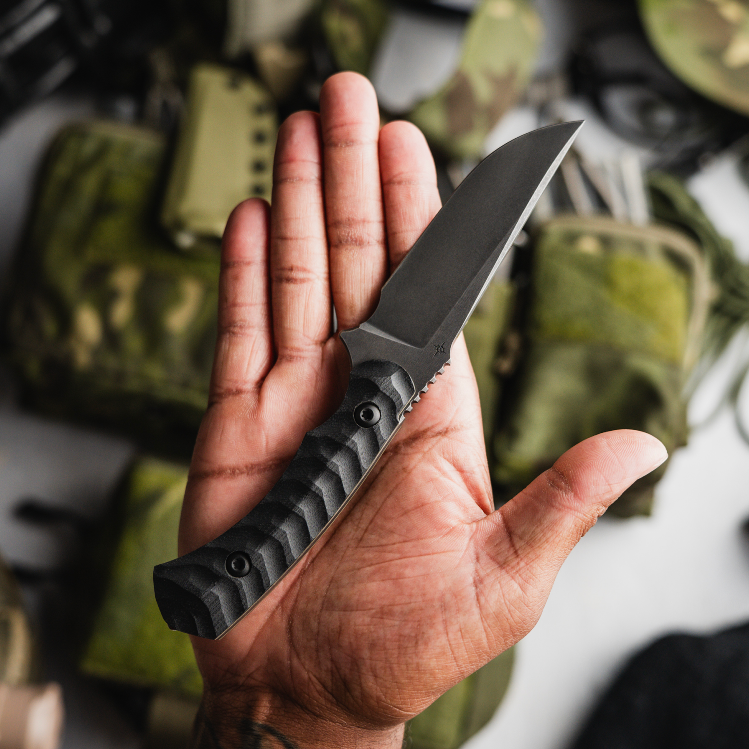 Introducing the Toor Knives Brauler, the newest addition to the Frontline Series and the smallest non-ringed tactical fixed blade in the collection. Designed for everyday utility in demanding environments, the Brauler is ideal for a variety of tasks, from basic cutting to precision work, all while delivering exceptional performance in a compact form factor. Crafted with CPM Cru-Wear steel, the Brauler excels in toughness, edge retention, and corrosion resistance, ensuring it can handle a range of tasks with ease. The blade features a high, flat-ground bevel, allowing for smooth slicing, easy maintenance, and improved cutting efficiency. Whether you're using it for everyday tasks or high-stakes operations, the Brauler is built to provide reliable results. The knife features Toor Knives' signature textured G10 scales, designed to enhance grip and comfort for secure handling in any condition. At the back of the knife, the integrated Tungsten Carbide Breacher Ball™ adds extra functionality, making the Brauler an essential tool in tactical scenarios. The Brauler comes with a FlexTech™ KYDEX® sheath, specifically designed as a fold-over to maintain a compact overall size for convenient and discreet carry. Known for its durability, weather resistance, and noise-dampening properties, KYDEX® ensures the knife stays securely in place. Each sheath is lined with suede, protecting the blade from scratches while maintaining a snug, clean fit for optimal retention. Proudly made in San Diego, CA, the Toor Knives Brauler offers unmatched craftsmanship, reliability, and versatility for any environment.