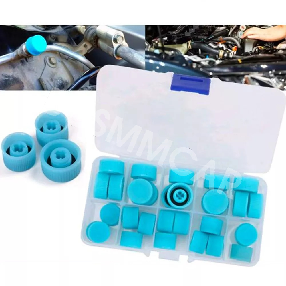 30Pcs Car Air Conditioner Refrigerant Dust Cover Valve Core Caps High Low Side Port Cap Auto High Low Pressure Caps Accessories
