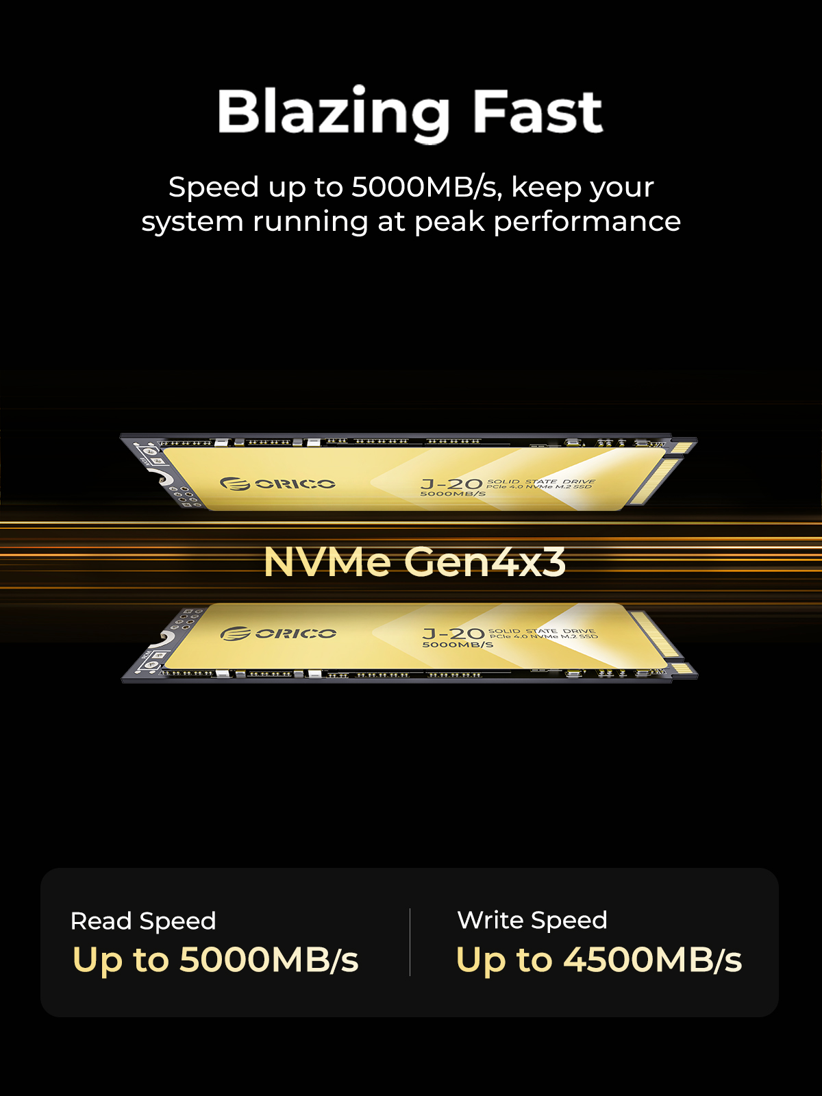 ORICO NVMe SSD accelerates your creativity! High-speed reading and writing greatly improves multi-tasking efficiency, allowing you to do whatever you want. Professional-grade quality, stable and durable, protecting your creations.